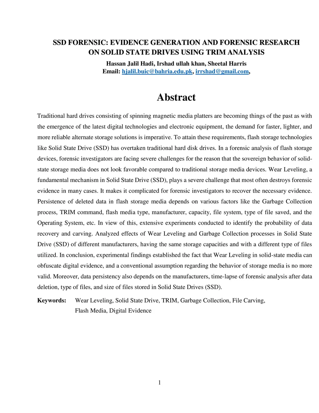 Traditional hard drives consisting of spinning magnetic media platters are becoming things of the past as with the emergence of the latest digital technologies and electronic equipment, the demand for faster, lighter, and more reliable alternate storage solutions is imperative. To attain these requirements, flash storage technologies like Solid State Drive (SSD) has overtaken traditional hard disk drives. In a forensic analysis of flash storage devices, forensic investigators are facing severe challenges for the reason that the sovereign behavior of solid-state storage media does not look favorable compared to traditional storage media devices. Wear Leveling, a fundamental mechanism in Solid State Drive (SSD), plays a severe challenge that most often destroys forensic evidence in many cases. It makes it complicated for forensic investigators to recover the necessary evidence. Persistence of deleted data in flash storage media depends on various factors like the Garbage Collection process, TRIM command, flash media type, manufacturer, capacity, file system, type of file saved, and the Operating System, etc. In view of this, extensive experiments conducted to identify the probability of data recovery and carving. Analyzed effects of Wear Leveling and Garbage Collection processes in Solid State Drive (SSD) of different manufacturers, having the same storage capacities and with a different type of files utilized. In conclusion, experimental findings established the fact that Wear Leveling in solid-state media can obfuscate digital evidence, and a conventional assumption regarding the behavior of storage media is no more valid. Moreover, data persistency also depends on the manufacturers, time-lapse of forensic analysis after data deletion, type of files, and size of files stored in Solid State Drives (SSD).