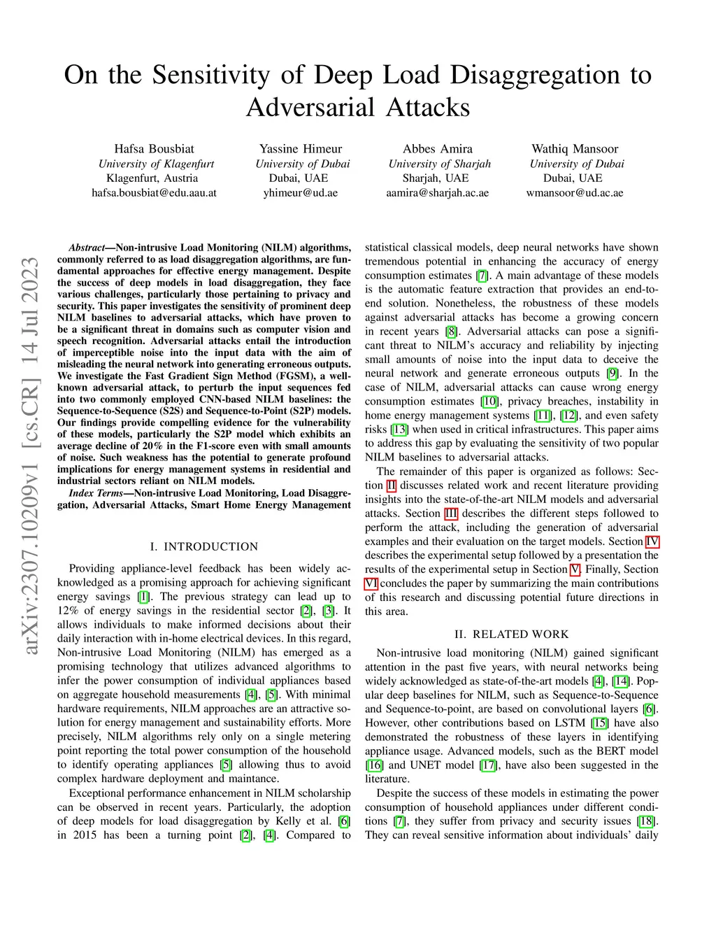 Non-intrusive Load Monitoring (NILM) algorithms, commonly referred to as load disaggregation algorithms, are fundamental tools for effective energy management. Despite the success of deep models in load disaggregation, they face various challenges, particularly those pertaining to privacy and security. This paper investigates the sensitivity of prominent deep NILM baselines to adversarial attacks, which have proven to be a significant threat in domains such as computer vision and speech recognition. Adversarial attacks entail the introduction of imperceptible noise into the input data with the aim of misleading the neural network into generating erroneous outputs. We investigate the Fast Gradient Sign Method (FGSM), a well-known adversarial attack, to perturb the input sequences fed into two commonly employed CNN-based NILM baselines: the Sequence-to-Sequence (S2S) and Sequence-to-Point (S2P) models. Our findings provide compelling evidence for the vulnerability of these models, particularly the S2P model which exhibits an average decline of 20\% in the F1-score even with small amounts of noise. Such weakness has the potential to generate profound implications for energy management systems in residential and industrial sectors reliant on NILM models.