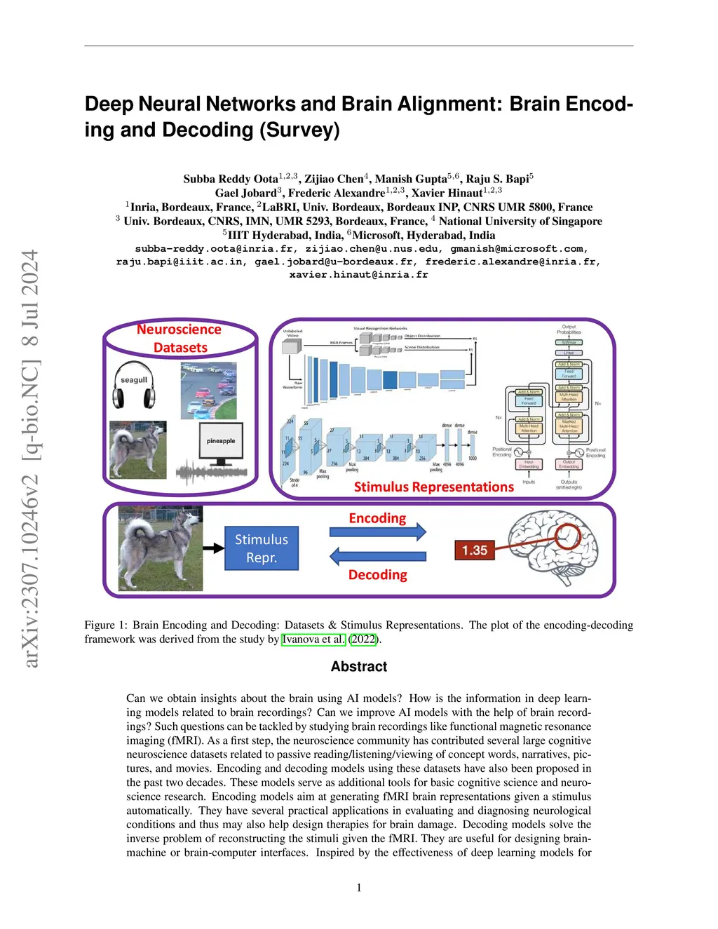 Deep Neural Networks and Brain Alignment: Brain Encoding and Decoding (Survey)