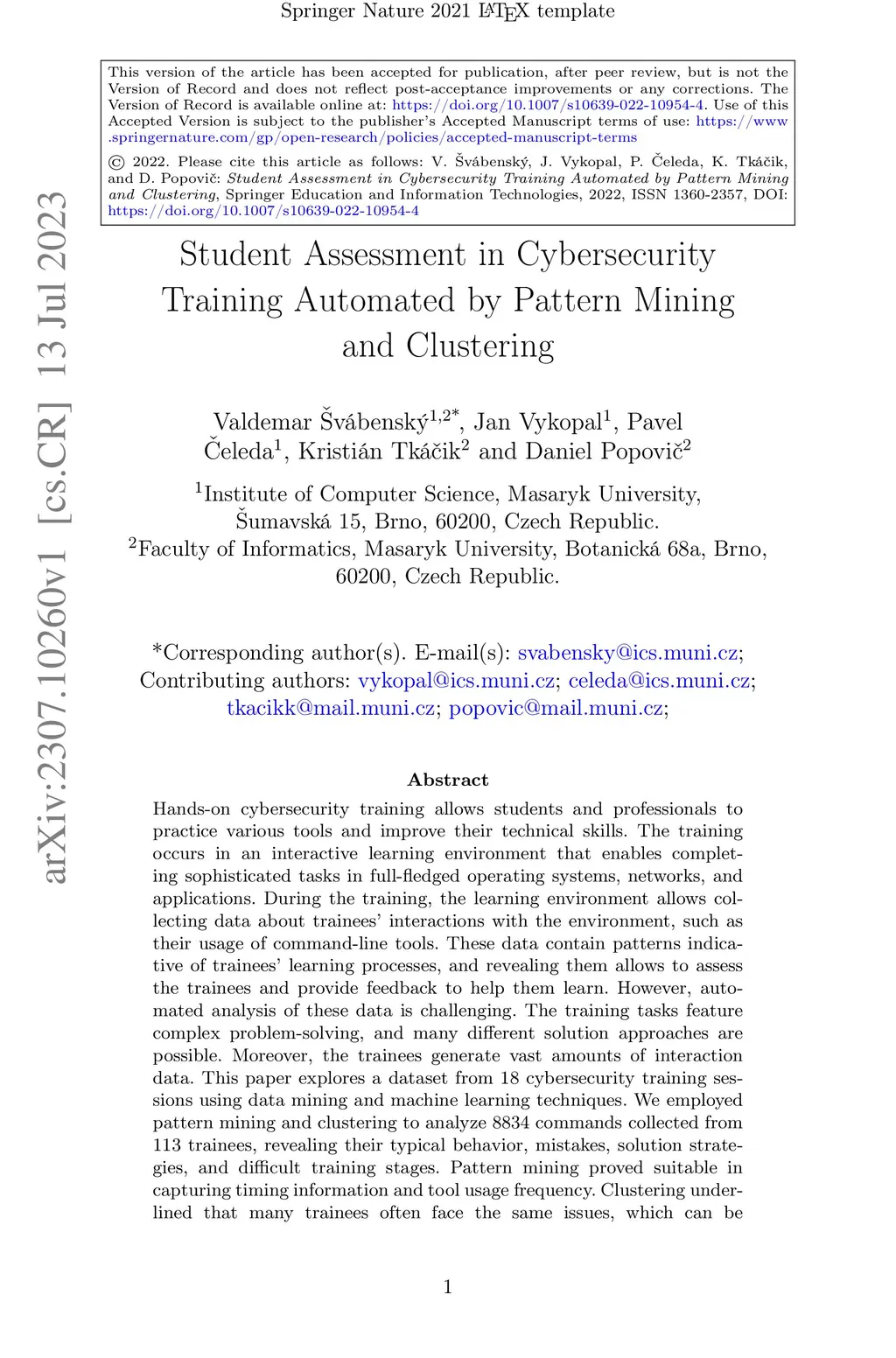 Student Assessment in Cybersecurity Training Automated by Pattern Mining