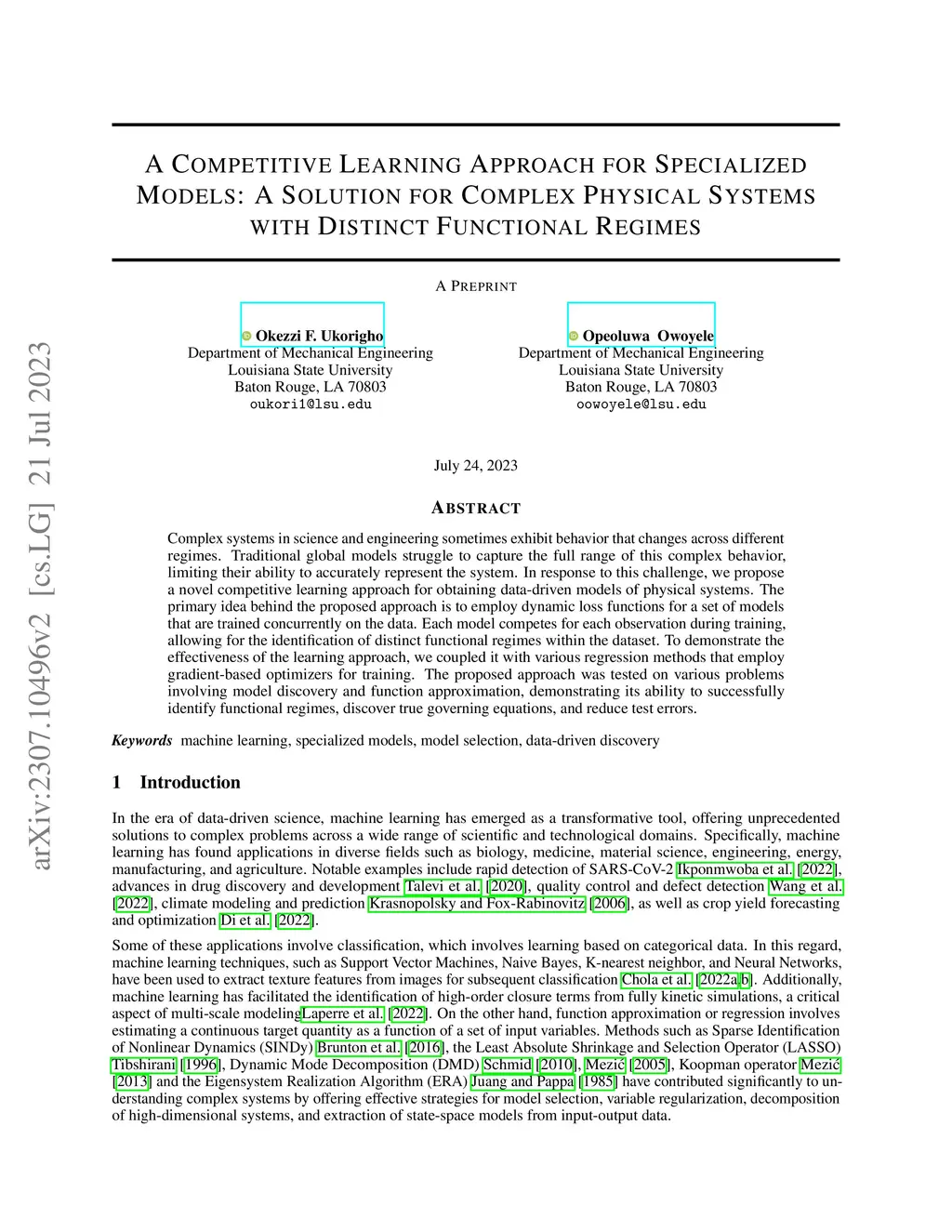 Complex systems in science and engineering sometimes exhibit behavior that changes across different regimes. Traditional global models struggle to capture the full range of this complex behavior, limiting their ability to accurately represent the system. In response to this challenge, we propose a novel competitive learning approach for obtaining data-driven models of physical systems. The primary idea behind the proposed approach is to employ dynamic loss functions for a set of models that are trained concurrently on the data. Each model competes for each observation during training, allowing for the identification of distinct functional regimes within the dataset. To demonstrate the effectiveness of the learning approach, we coupled it with various regression methods that employ gradient-based optimizers for training. The proposed approach was tested on various problems involving model discovery and function approximation, demonstrating its ability to successfully identify functional regimes, discover true governing equations, and reduce test errors.