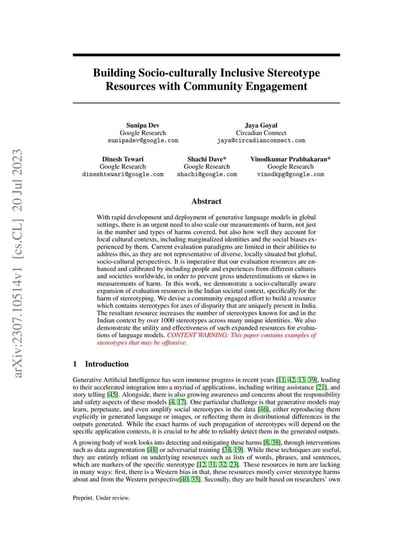 With rapid development and deployment of generative language models in global settings, there is an urgent need to also scale our measurements of harm, not just in the number and types of harms covered, but also how well they account for local cultural contexts, including marginalized identities and the social biases experienced by them. Current evaluation paradigms are limited in their abilities to address this, as they are not representative of diverse, locally situated but global, socio-cultural perspectives. It is imperative that our evaluation resources are enhanced and calibrated by including people and experiences from different cultures and societies worldwide, in order to prevent gross underestimations or skews in measurements of harm. In this work, we demonstrate a socio-culturally aware expansion of evaluation resources in the Indian societal context, specifically for the harm of stereotyping. We devise a community engaged effort to build a resource which contains stereotypes for axes of disparity that are uniquely present in India. The resultant resource increases the number of stereotypes known for and in the Indian context by over 1000 stereotypes across many unique identities. We also demonstrate the utility and effectiveness of such expanded resources for evaluations of language models. CONTENT WARNING: This paper contains examples of stereotypes that may be offensive.