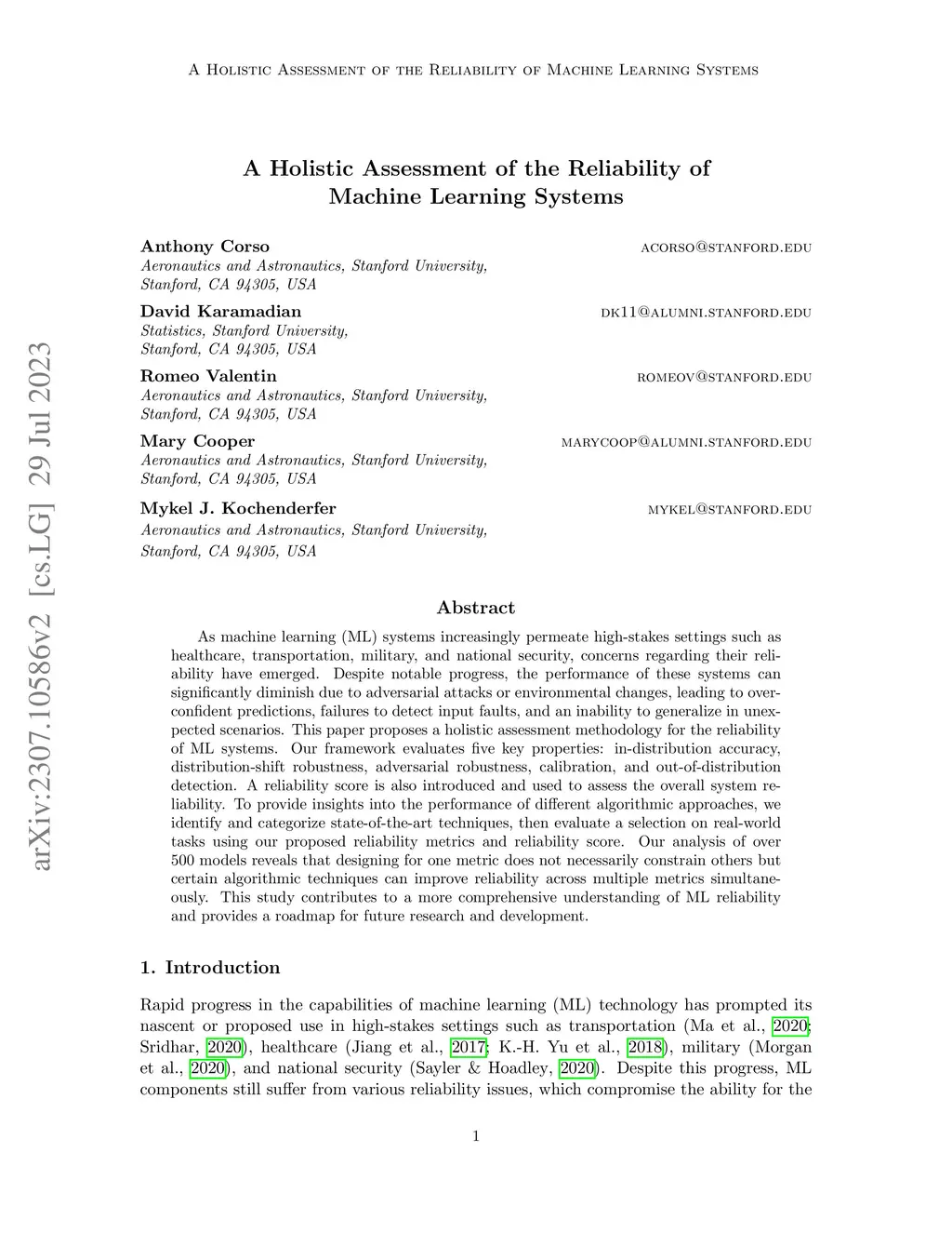 A Holistic Assessment of the Reliability of Machine Learning Systems
