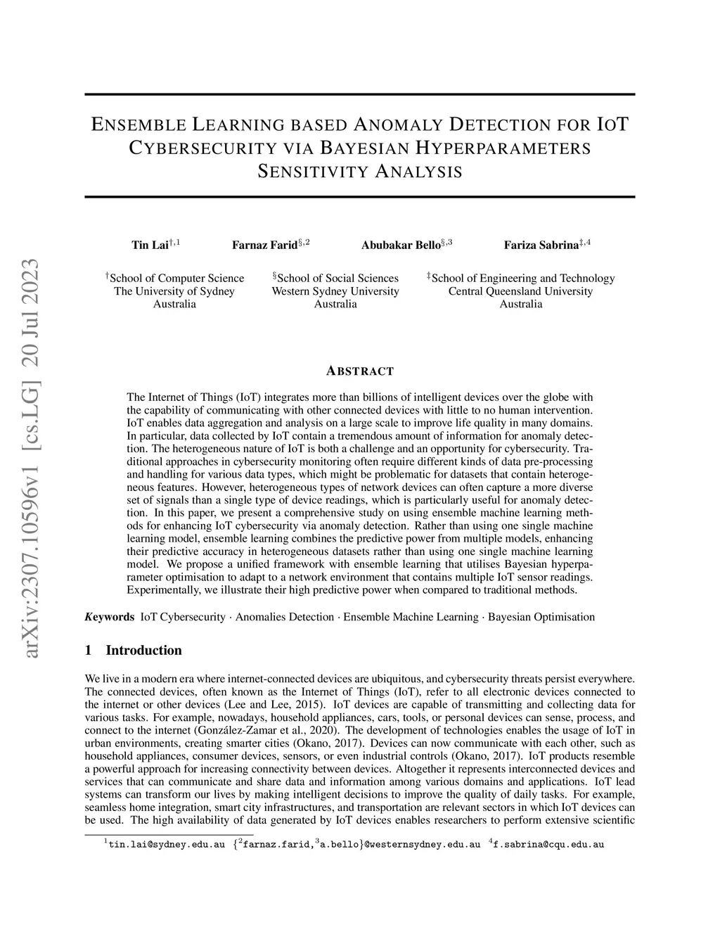 Ensemble Learning based Anomaly Detection for IoT Cybersecurity via