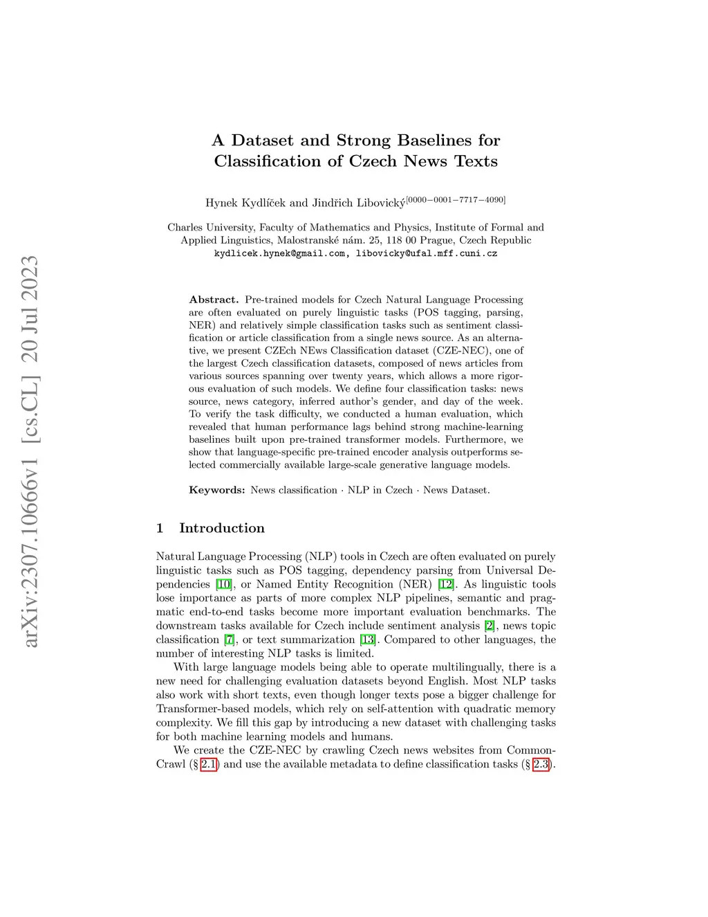 A Dataset and Strong Baselines for Classification of Czech News Texts