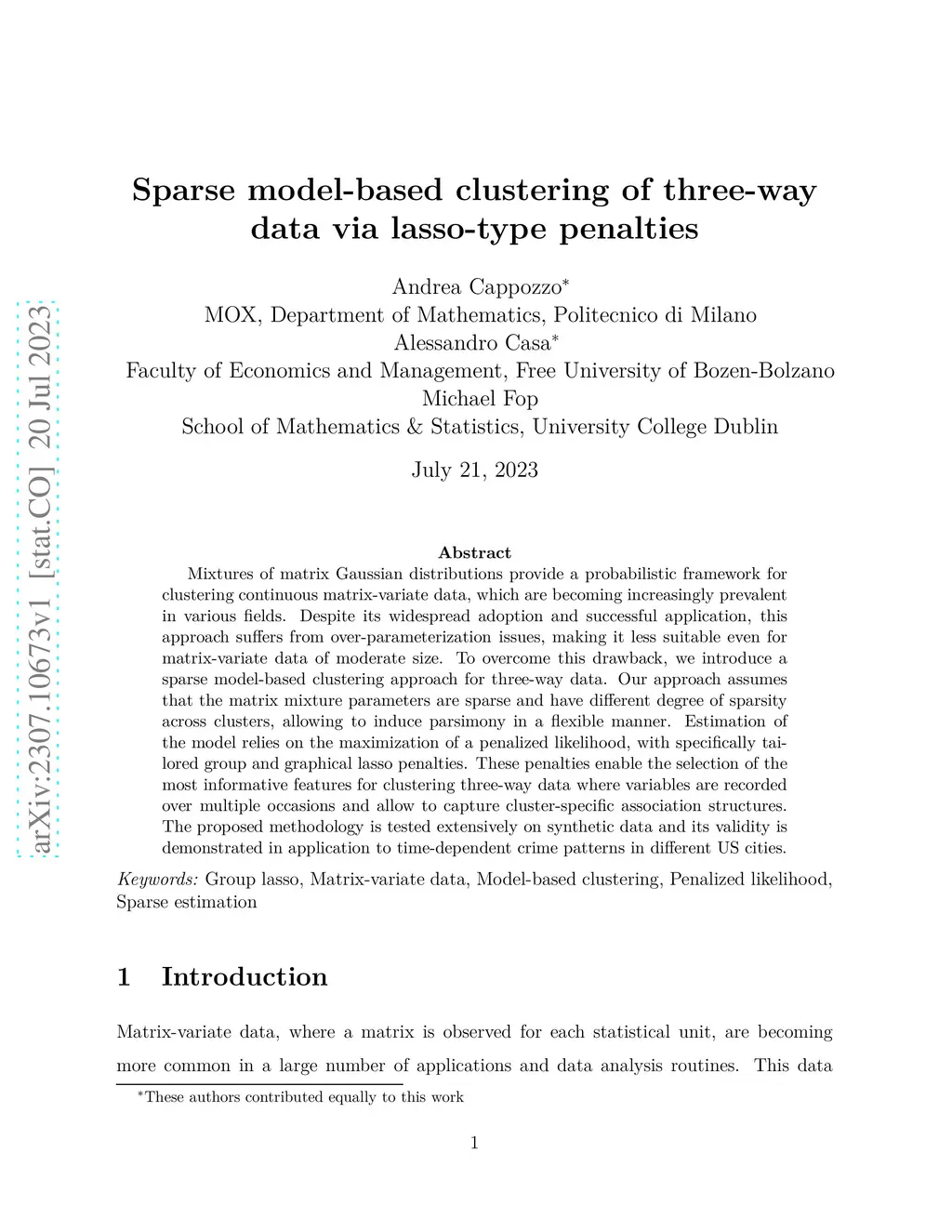 Sparse model-based clustering of three-way data via lasso-type penalties