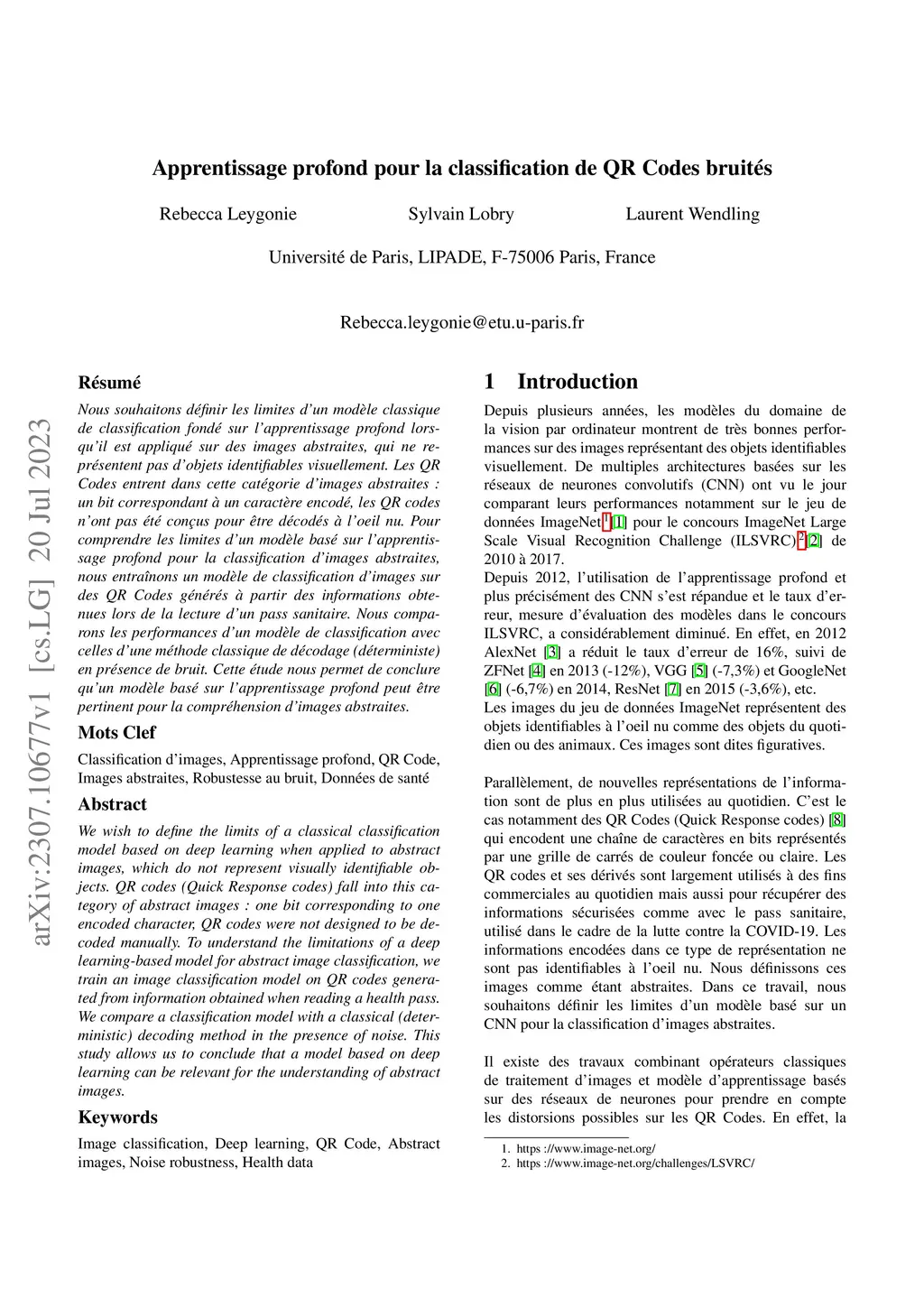 We wish to define the limits of a classical classification model based on deep learning when applied to abstract images, which do not represent visually identifiable objects.QR codes (Quick Response codes) fall into this category of abstract images: one bit corresponding to one encoded character, QR codes were not designed to be decoded manually. To understand the limitations of a deep learning-based model for abstract image classification, we train an image classification model on QR codes generated from information obtained when reading a health pass. We compare a classification model with a classical (deterministic) decoding method in the presence of noise. This study allows us to conclude that a model based on deep learning can be relevant for the understanding of abstract images.