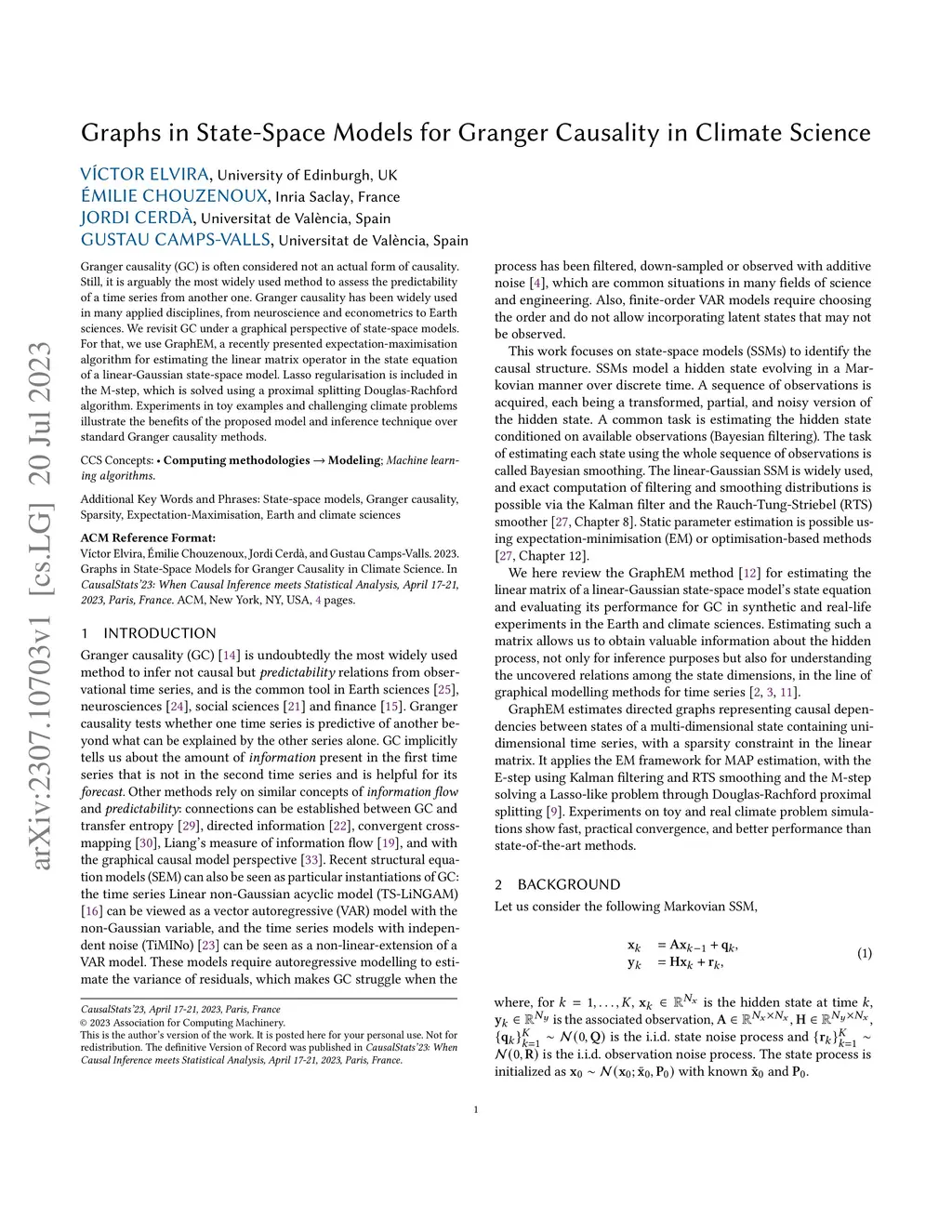Graphs in State-Space Models for Granger Causality in Climate Science
