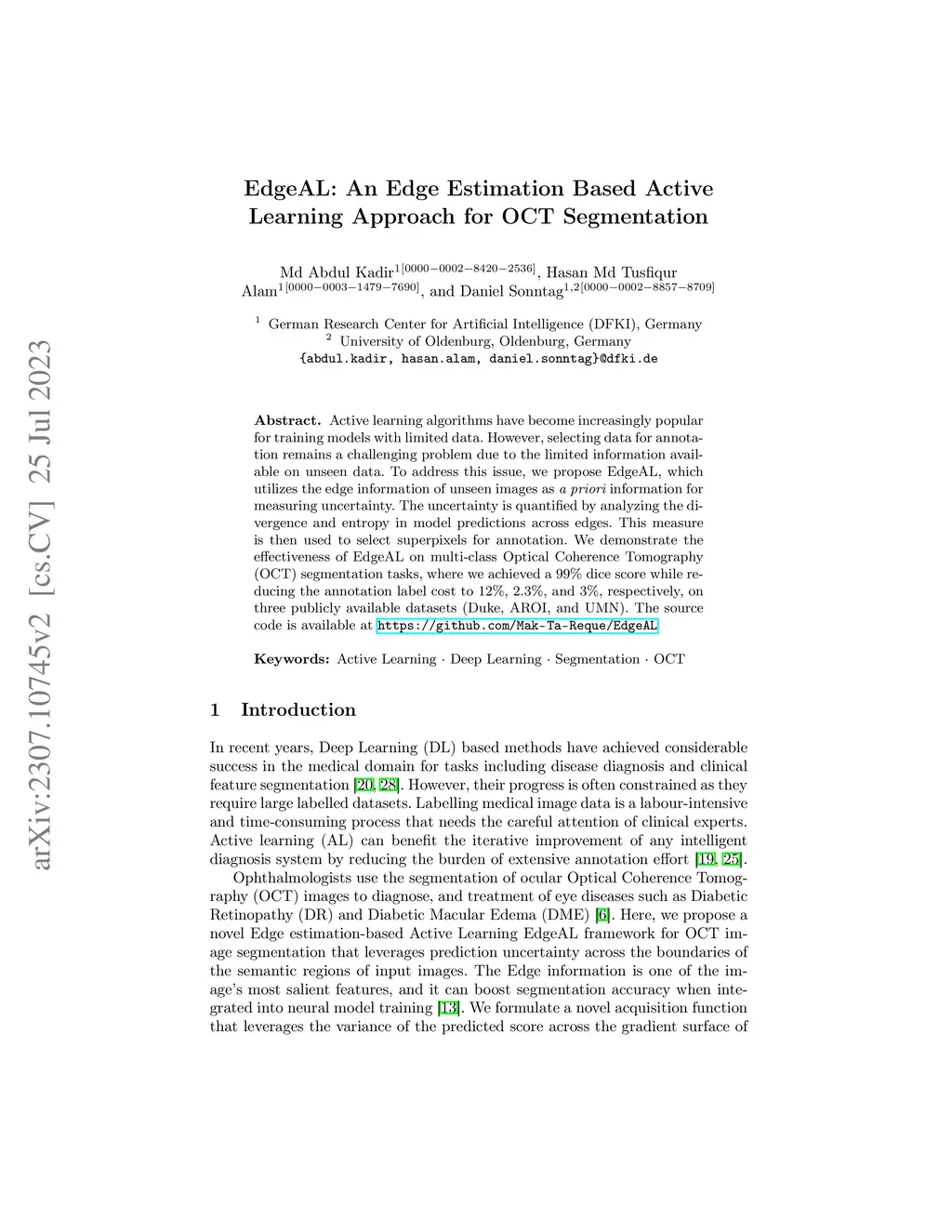 EdgeAL: An Edge Estimation Based Active Learning Approach for OCT