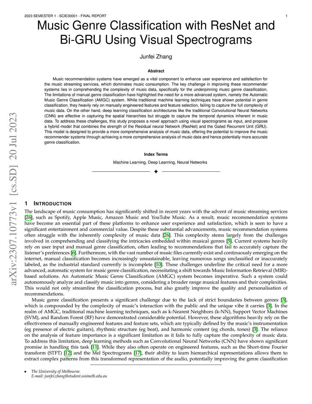 Music Genre Classification with ResNet and Bi-GRU Using Visual