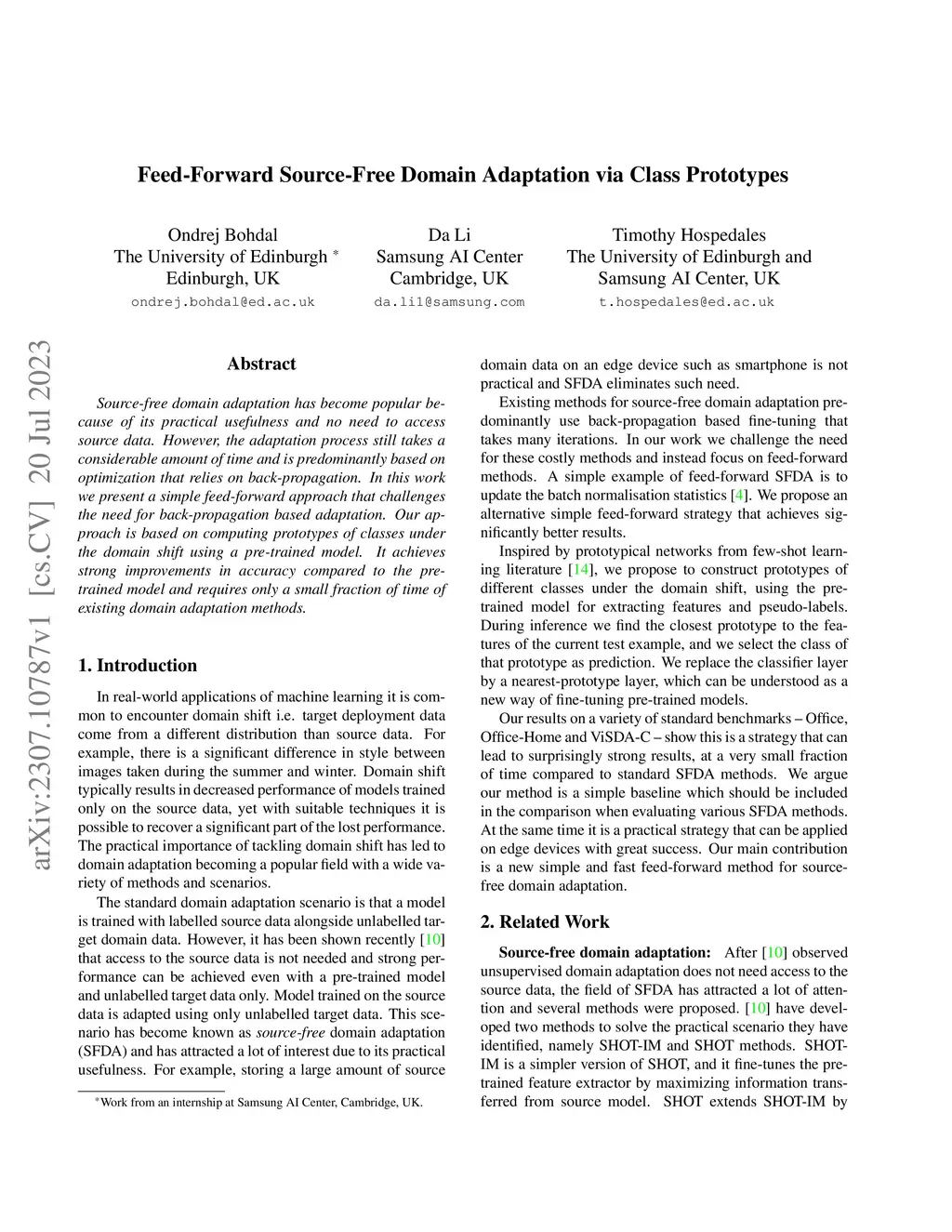 Feed-Forward Source-Free Domain Adaptation via Class Prototypes