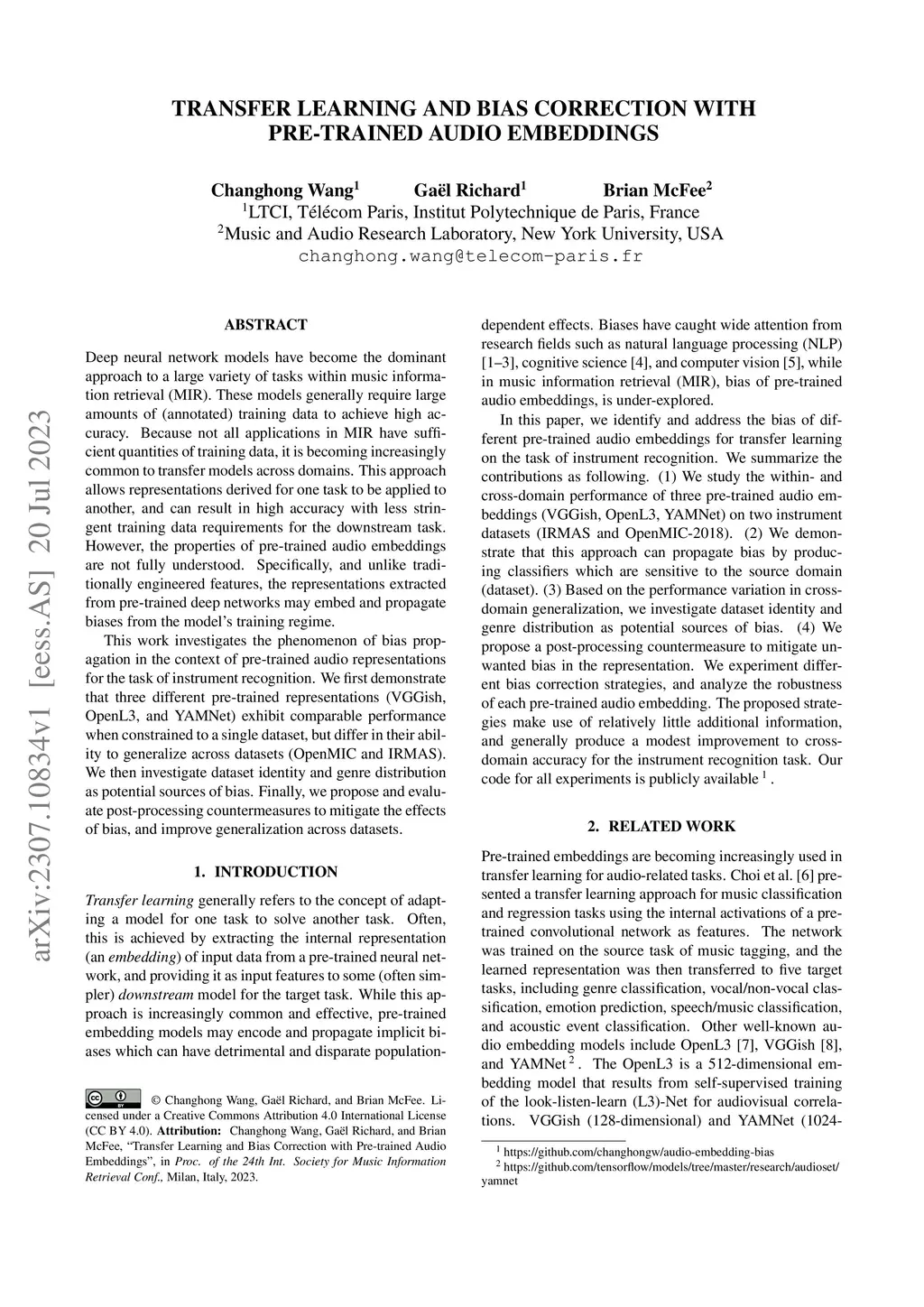 Transfer Learning and Bias Correction with Pre-trained Audio Embeddings
