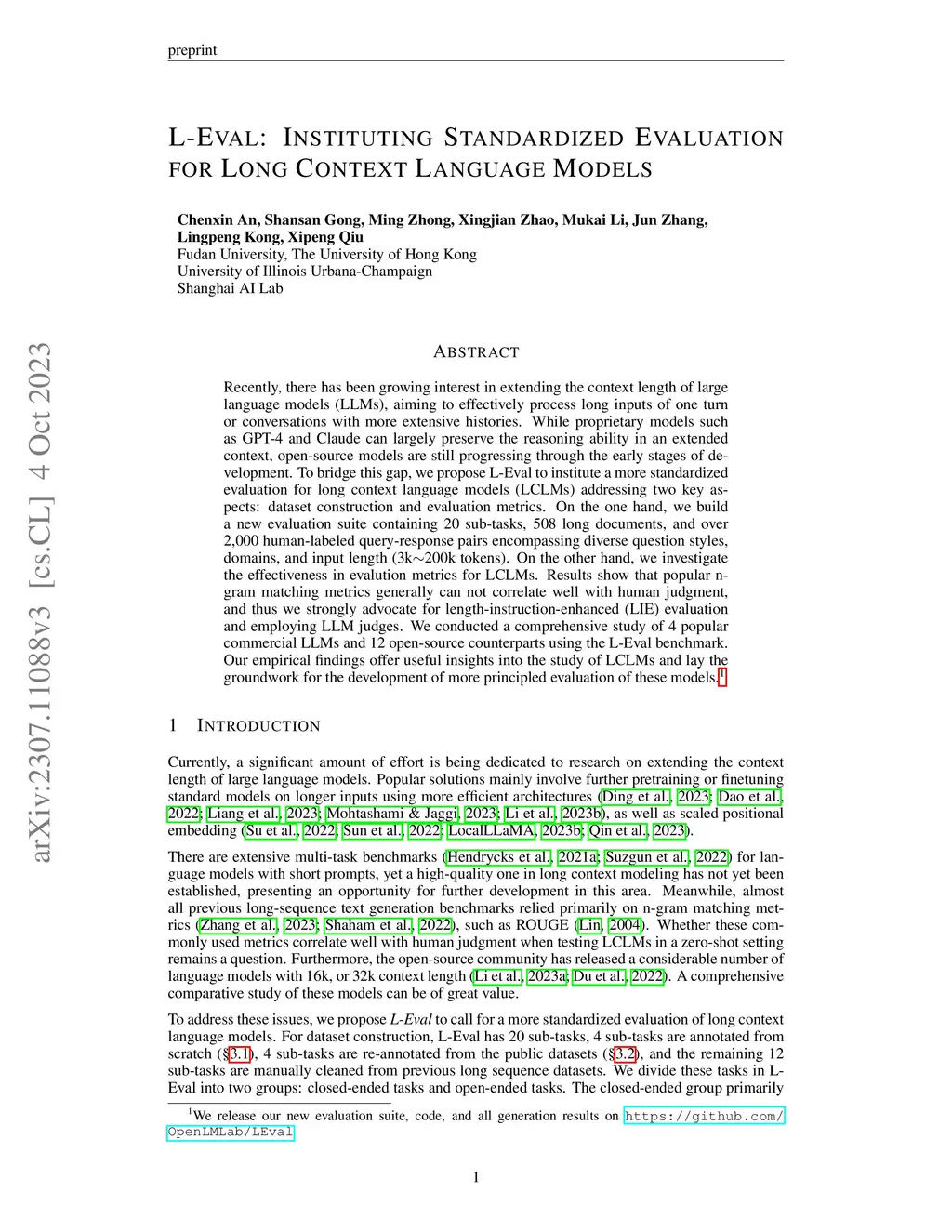 L-Eval: Instituting Standardized Evaluation for Long Context Language
