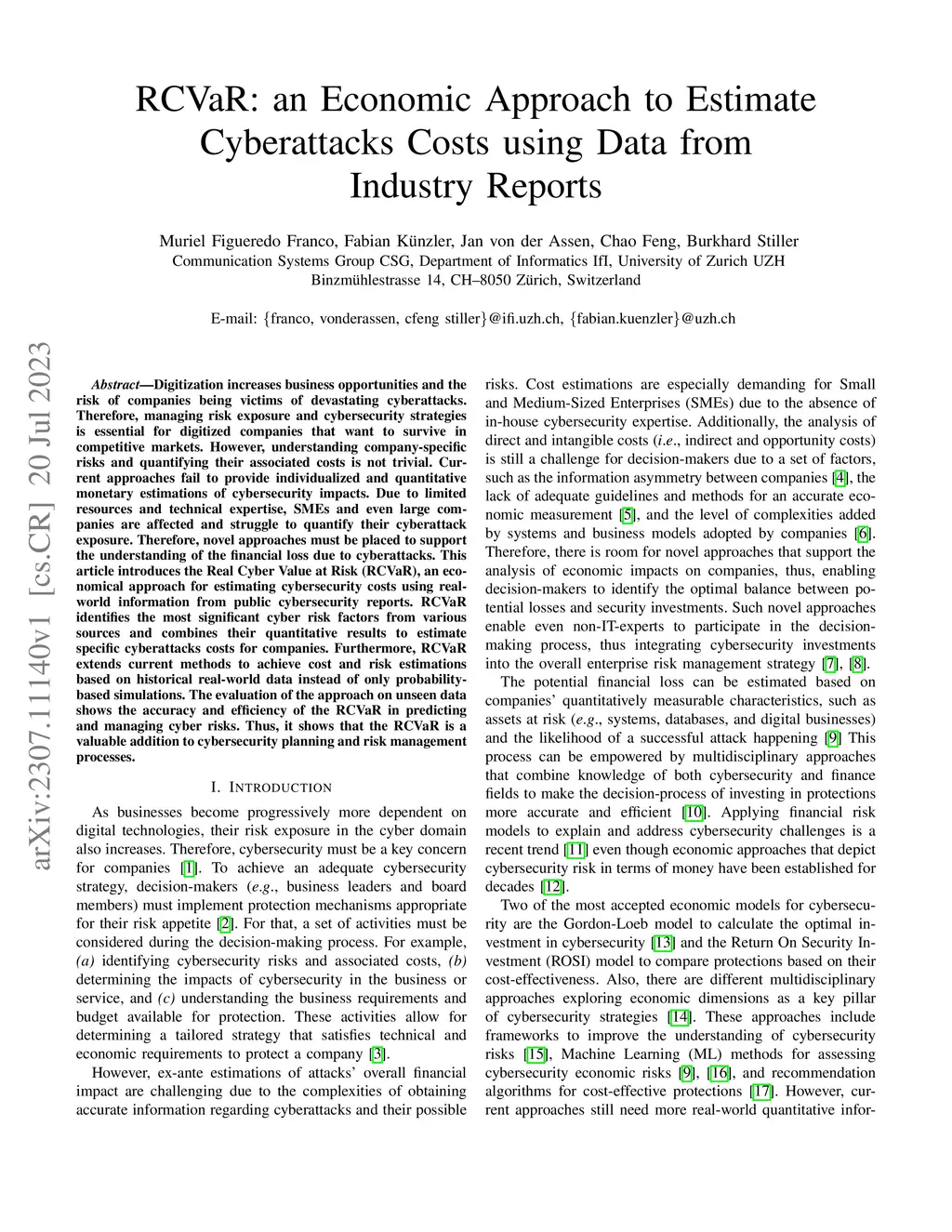 Digitization increases business opportunities and the risk of companies being victims of devastating cyberattacks. Therefore, managing risk exposure and cybersecurity strategies is essential for digitized companies that want to survive in competitive markets. However, understanding company-specific risks and quantifying their associated costs is not trivial. Current approaches fail to provide individualized and quantitative monetary estimations of cybersecurity impacts. Due to limited resources and technical expertise, SMEs and even large companies are affected and struggle to quantify their cyberattack exposure. Therefore, novel approaches must be placed to support the understanding of the financial loss due to cyberattacks. This article introduces the Real Cyber Value at Risk (RCVaR), an economical approach for estimating cybersecurity costs using real-world information from public cybersecurity reports. RCVaR identifies the most significant cyber risk factors from various sources and combines their quantitative results to estimate specific cyberattacks costs for companies. Furthermore, RCVaR extends current methods to achieve cost and risk estimations based on historical real-world data instead of only probability-based simulations. The evaluation of the approach on unseen data shows the accuracy and efficiency of the RCVaR in predicting and managing cyber risks. Thus, it shows that the RCVaR is a valuable addition to cybersecurity planning and risk management processes.
