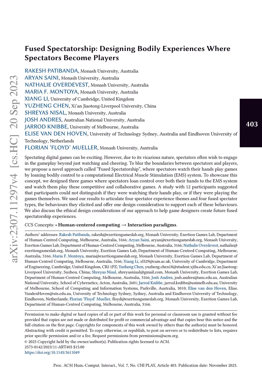 Fused Spectatorship: Designing Bodily Experiences Where Spectators