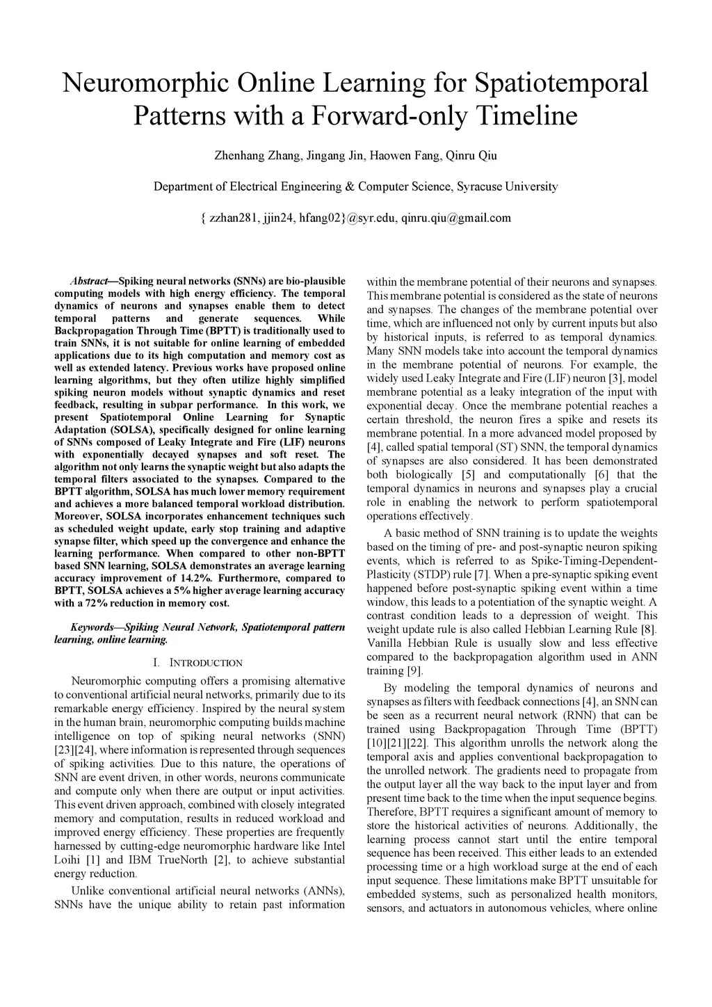 Neuromorphic Online Learning for Spatiotemporal Patterns with a