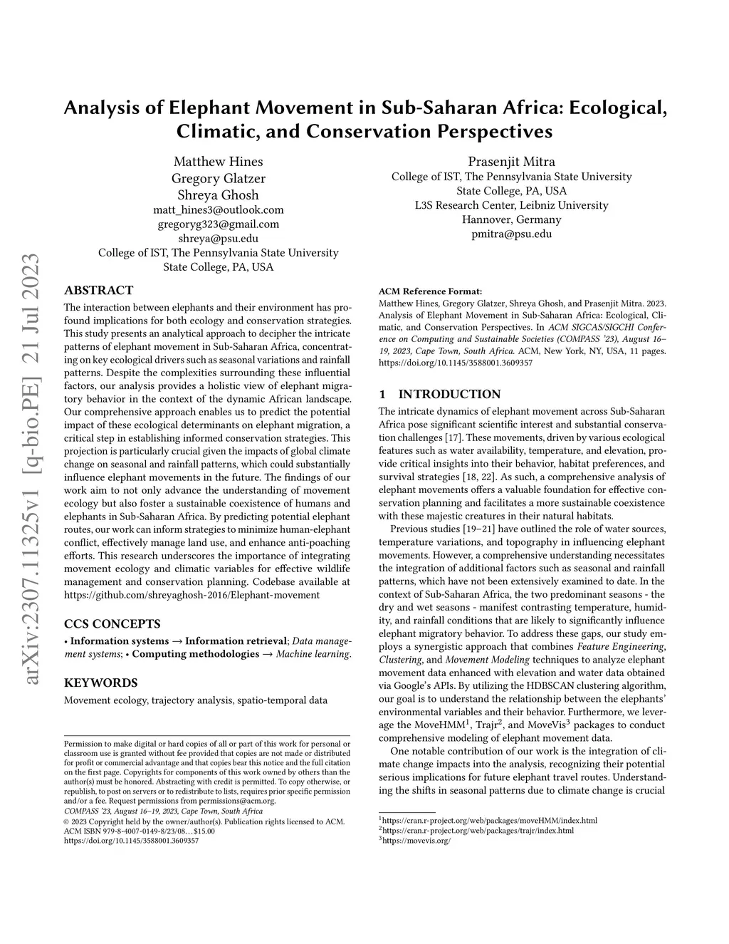 Analysis of Elephant Movement in Sub-Saharan Africa: Ecological,