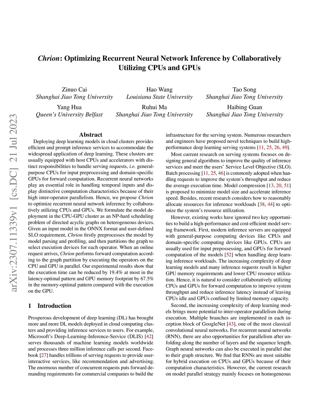 Chrion: Optimizing Recurrent Neural Network Inference by Collaboratively