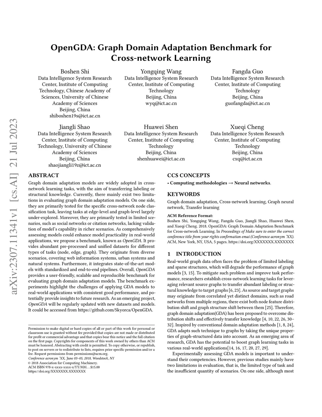 OpenGDA: Graph Domain Adaptation Benchmark for Cross-network Learning