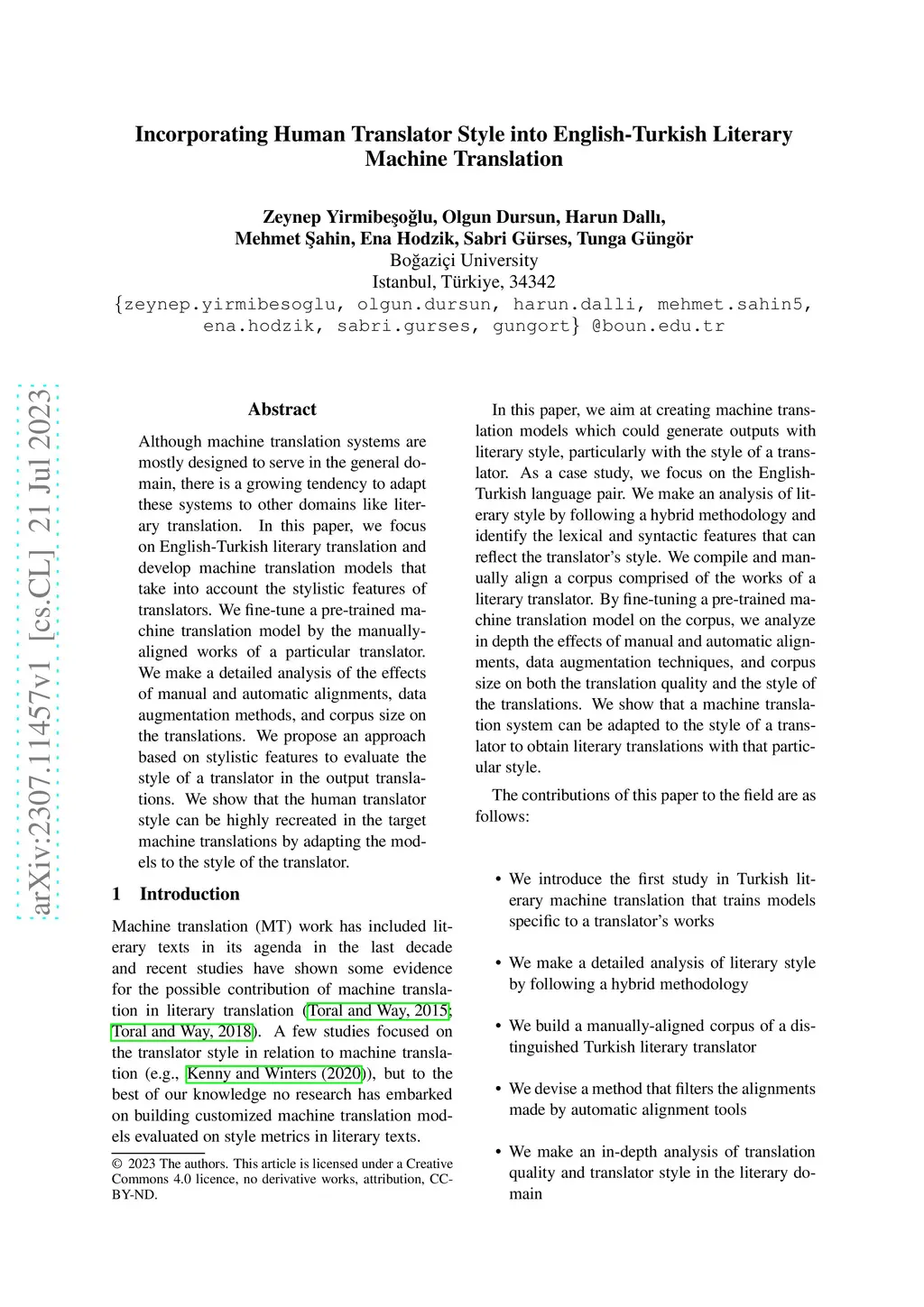 Incorporating Human Translator Style into English-Turkish Literary
