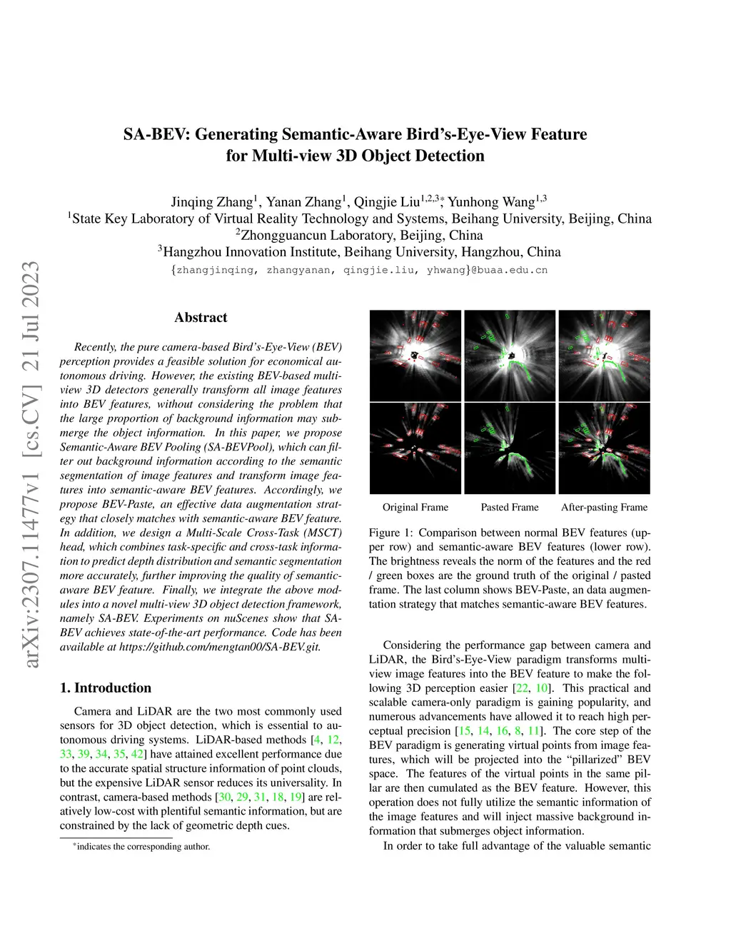 SA-BEV: Generating Semantic-Aware Bird's-Eye-View Feature for Multi-view