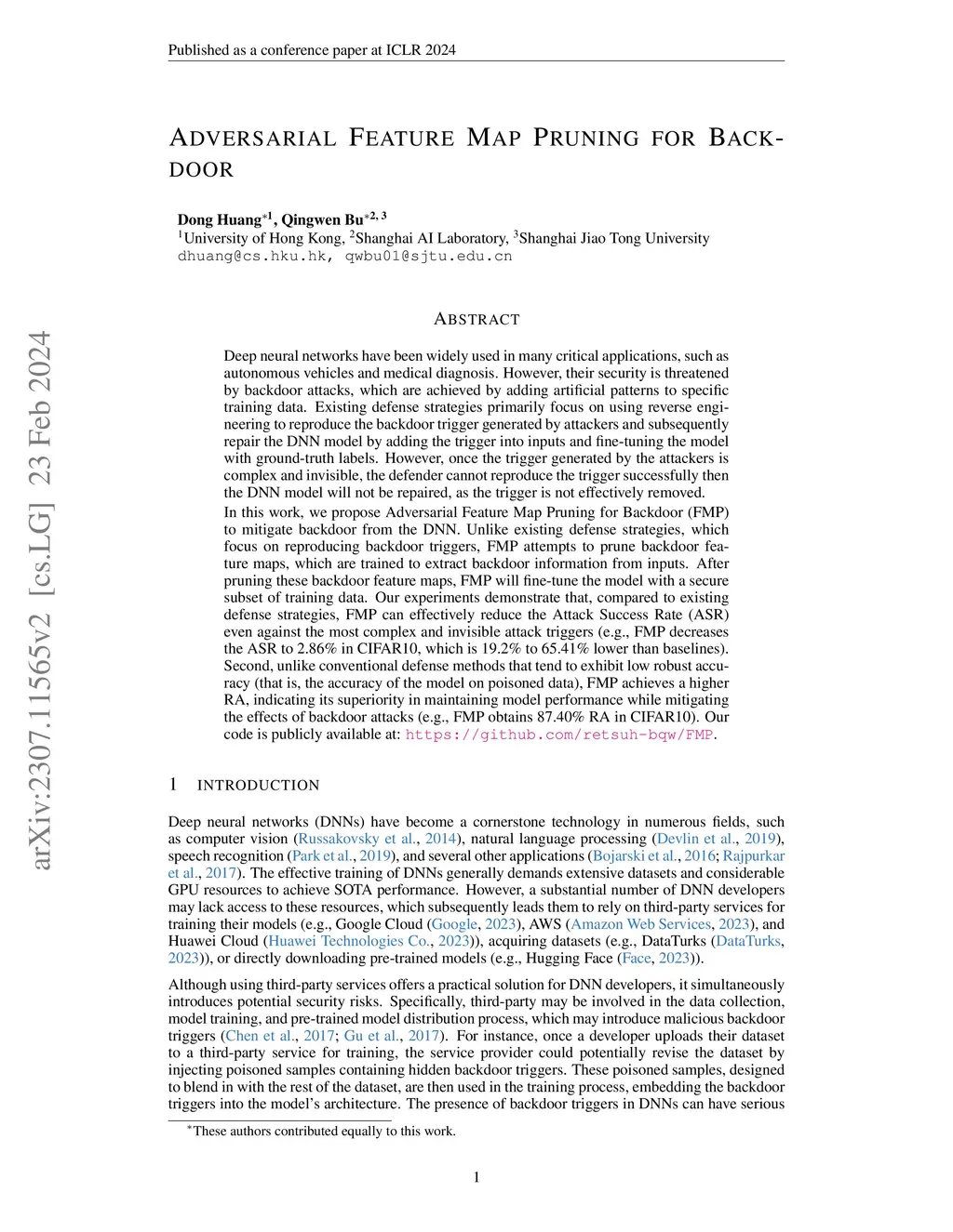 Adversarial Feature Map Pruning for Backdoor