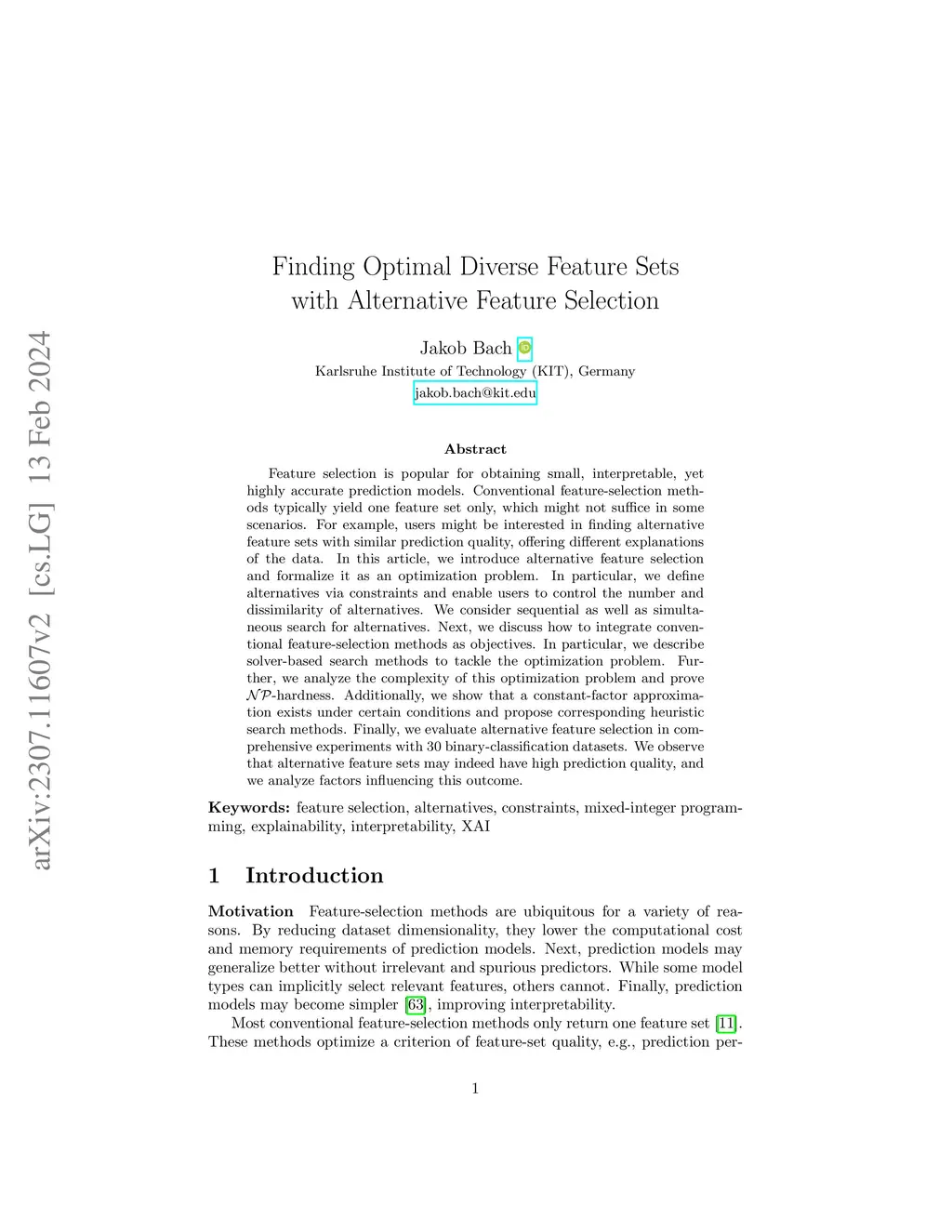 Finding Optimal Diverse Feature Sets with Alternative Feature Selection