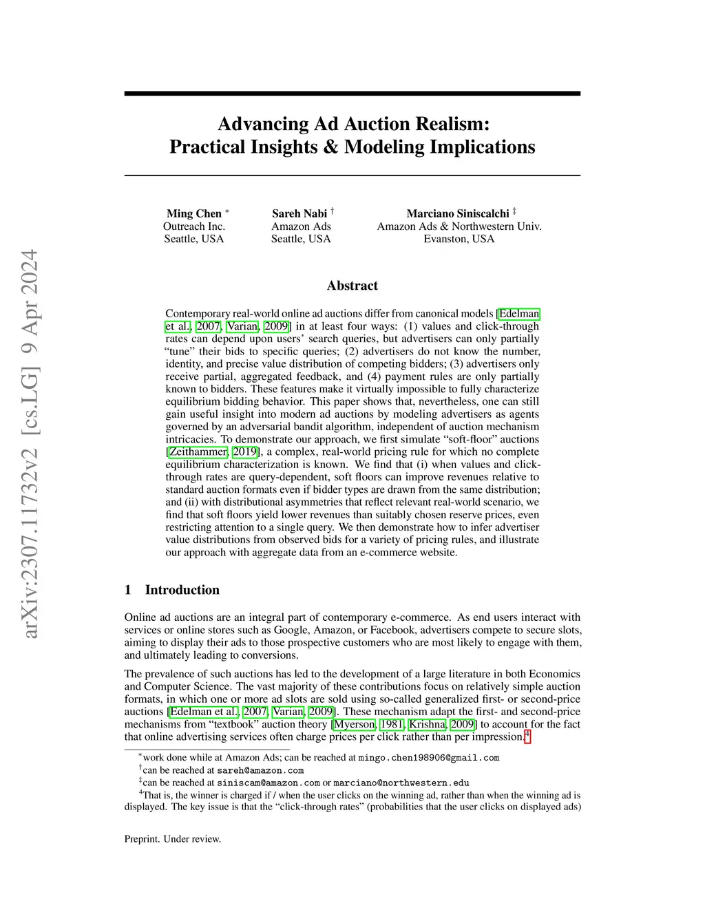 Contemporary real-world online ad auctions differ from canonical models [Edelman et al., 2007; Varian, 2009] in at least four ways: (1) values and click-through rates can depend upon users' search queries, but advertisers can only partially "tune" their bids to specific queries; (2) advertisers do not know the number, identity, and precise value distribution of competing bidders; (3) advertisers only receive partial, aggregated feedback, and (4) payment rules are only partially known to bidders. These features make it virtually impossible to fully characterize equilibrium bidding behavior. This paper shows that, nevertheless, one can still gain useful insight into modern ad auctions by modeling advertisers as agents governed by an adversarial bandit algorithm, independent of auction mechanism intricacies. To demonstrate our approach, we first simulate "soft-floor" auctions [Zeithammer, 2019], a complex, real-world pricing rule for which no complete equilibrium characterization is known. We find that (i) when values and click-through rates are query-dependent, soft floors can improve revenues relative to standard auction formats even if bidder types are drawn from the same distribution; and (ii) with distributional asymmetries that reflect relevant real-world scenario, we find that soft floors yield lower revenues than suitably chosen reserve prices, even restricting attention to a single query. We then demonstrate how to infer advertiser value distributions from observed bids for a variety of pricing rules, and illustrate our approach with aggregate data from an e-commerce website.