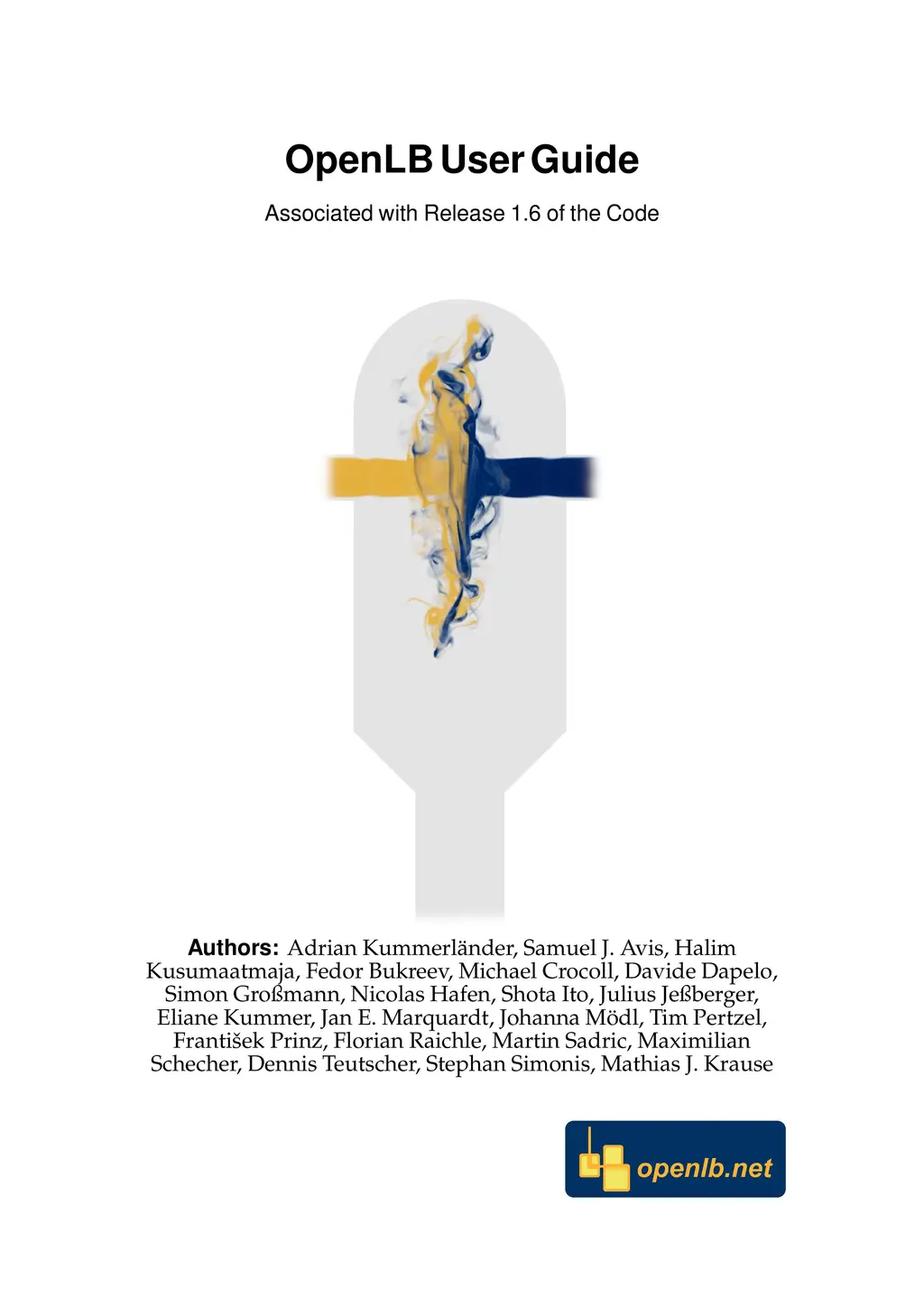OpenLB is an object-oriented implementation of LBM. It is the first implementation of a generic platform for LBM programming, which is shared with the open source community (GPLv2). Since the first release in 2007, the code has been continuously improved and extended which is documented by thirteen releases as well as the corresponding release notes which are available on the OpenLB website (https://www.openlb.net). The OpenLB code is written in C++ and is used by application programmers as well as developers, with the ability to implement custom models OpenLB supports complex data structures that allow simulations in complex geometries and parallel execution using MPI, OpenMP and CUDA on high-performance computers. The source code uses the concepts of interfaces and templates, so that efficient, direct and intuitive implementations of the LBM become possible. The efficiency and scalability has been checked and proved by code reviews. This user manual and a source code documentation by DoxyGen are available on the OpenLB project website.