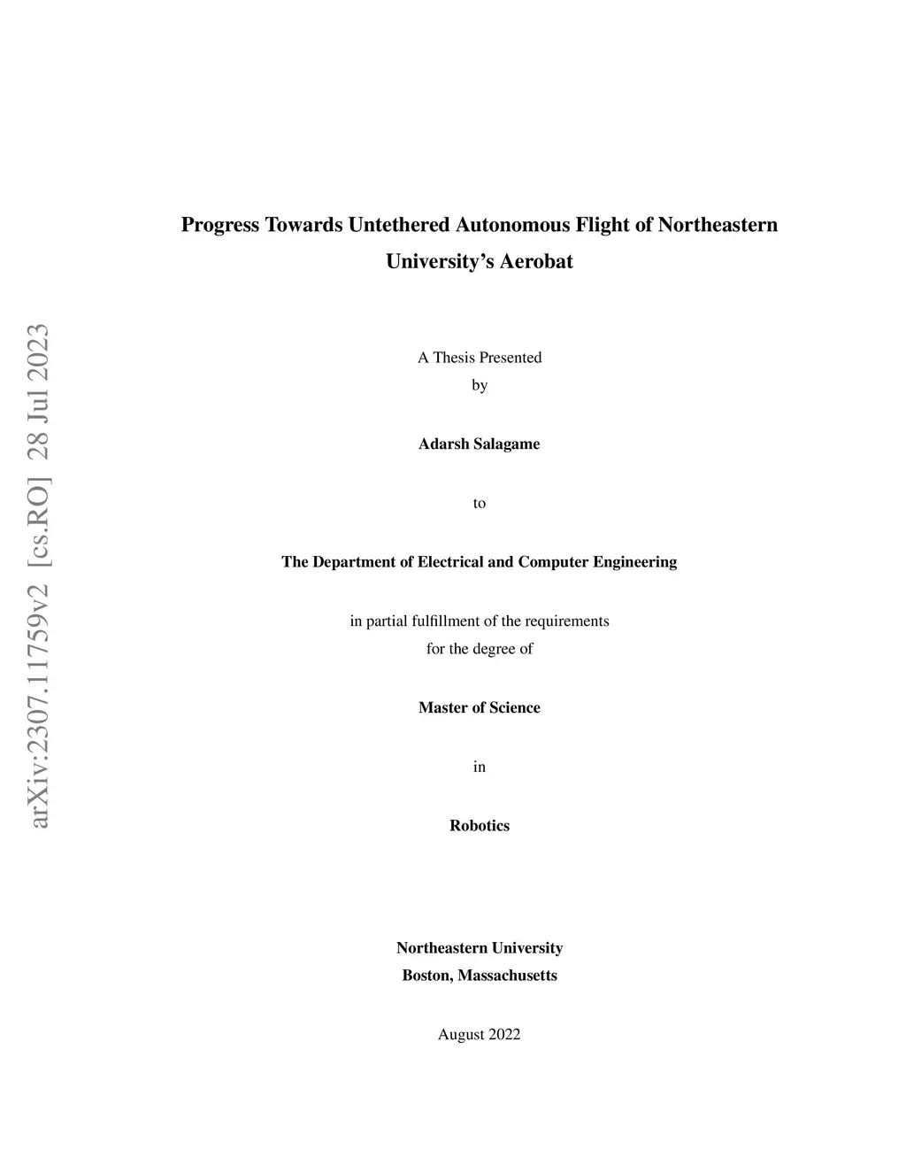 Progress Towards Untethered Autonomous Flight of Northeastern University