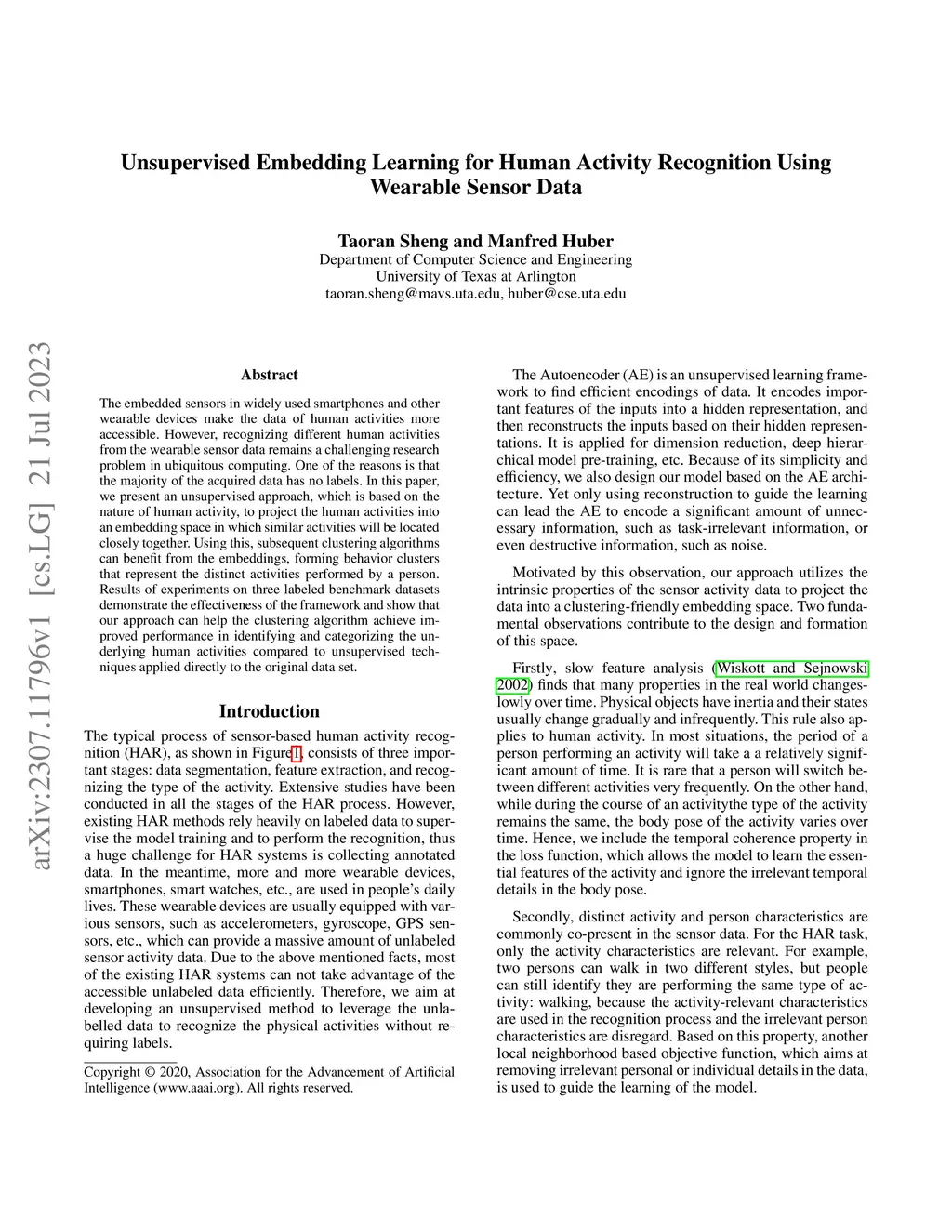 Unsupervised Embedding Learning for Human Activity Recognition Using