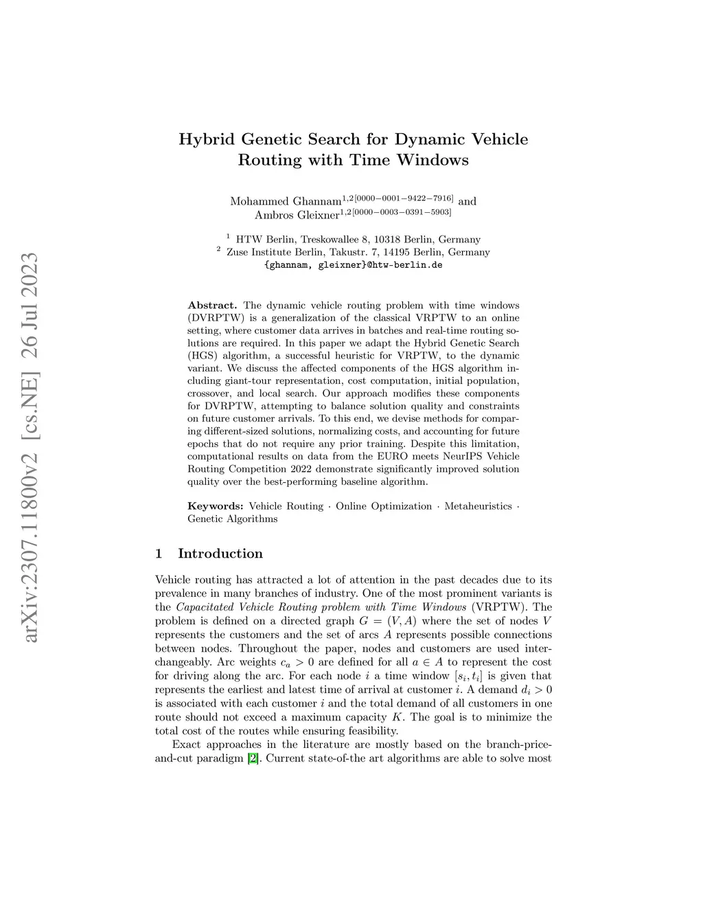 Hybrid Genetic Search for Dynamic Vehicle Routing with Time Windows