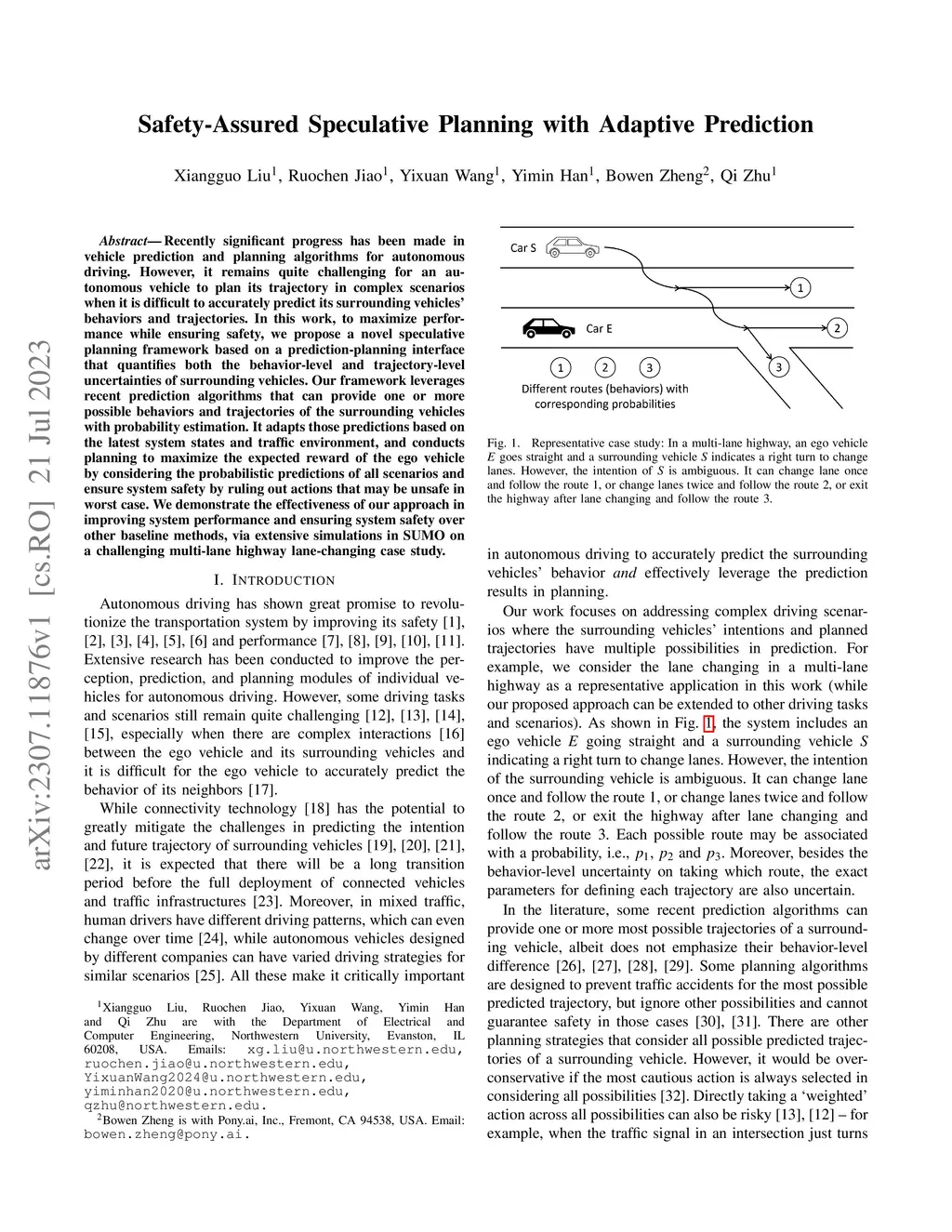 Recently significant progress has been made in vehicle prediction and planning algorithms for autonomous driving. However, it remains quite challenging for an autonomous vehicle to plan its trajectory in complex scenarios when it is difficult to accurately predict its surrounding vehicles' behaviors and trajectories. In this work, to maximize performance while ensuring safety, we propose a novel speculative planning framework based on a prediction-planning interface that quantifies both the behavior-level and trajectory-level uncertainties of surrounding vehicles. Our framework leverages recent prediction algorithms that can provide one or more possible behaviors and trajectories of the surrounding vehicles with probability estimation. It adapts those predictions based on the latest system states and traffic environment, and conducts planning to maximize the expected reward of the ego vehicle by considering the probabilistic predictions of all scenarios and ensure system safety by ruling out actions that may be unsafe in worst case. We demonstrate the effectiveness of our approach in improving system performance and ensuring system safety over other baseline methods, via extensive simulations in SUMO on a challenging multi-lane highway lane-changing case study.
