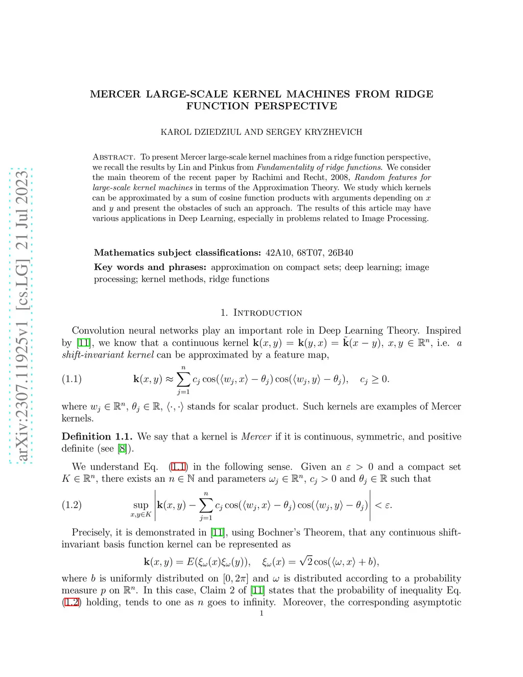 Mercer Large-Scale Kernel Machines from Ridge Function Perspective