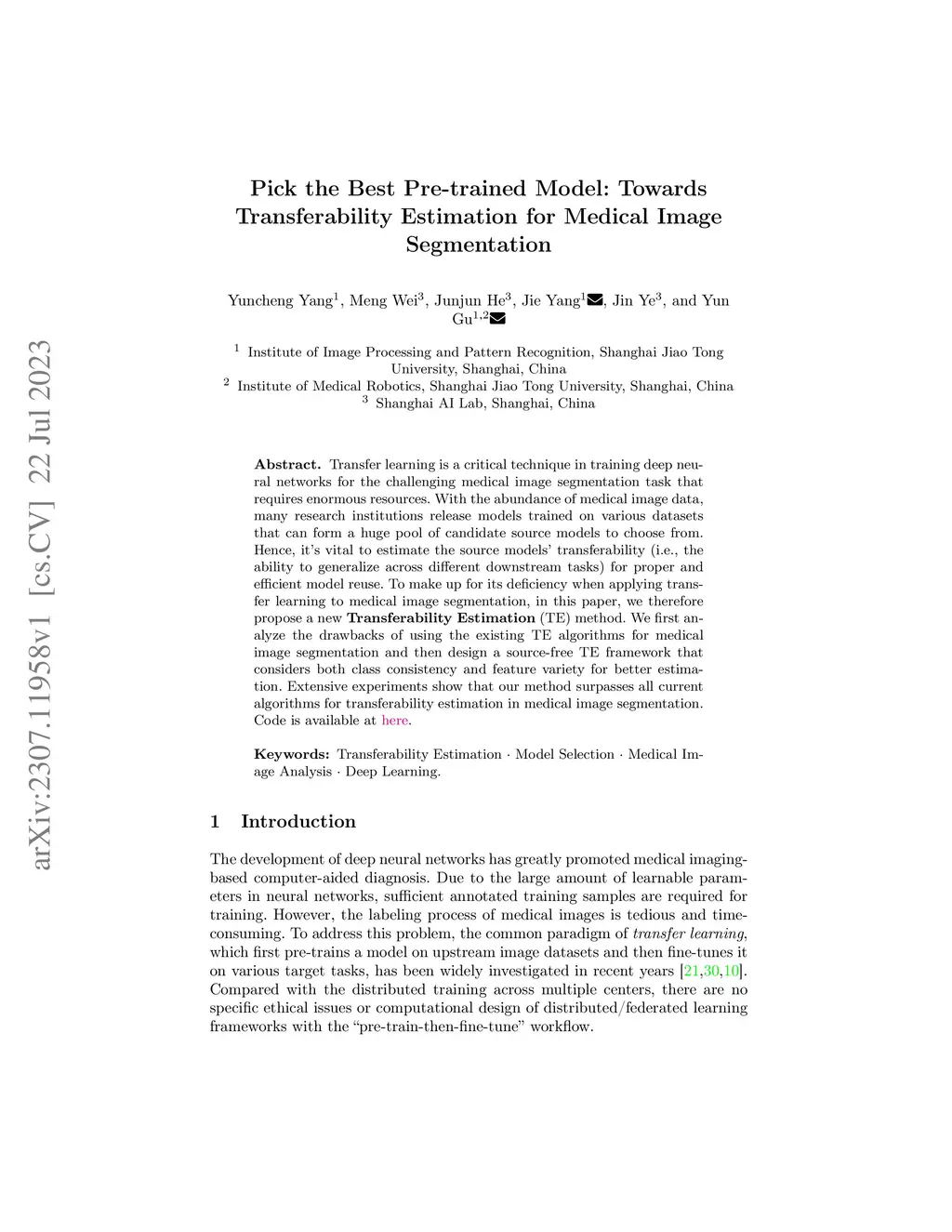 Transfer learning is a critical technique in training deep neural networks for the challenging medical image segmentation task that requires enormous resources. With the abundance of medical image data, many research institutions release models trained on various datasets that can form a huge pool of candidate source models to choose from. Hence, it's vital to estimate the source models' transferability (i.e., the ability to generalize across different downstream tasks) for proper and efficient model reuse. To make up for its deficiency when applying transfer learning to medical image segmentation, in this paper, we therefore propose a new Transferability Estimation (TE) method. We first analyze the drawbacks of using the existing TE algorithms for medical image segmentation and then design a source-free TE framework that considers both class consistency and feature variety for better estimation. Extensive experiments show that our method surpasses all current algorithms for transferability estimation in medical image segmentation. Code is available at https://github.com/EndoluminalSurgicalVision-IMR/CCFV