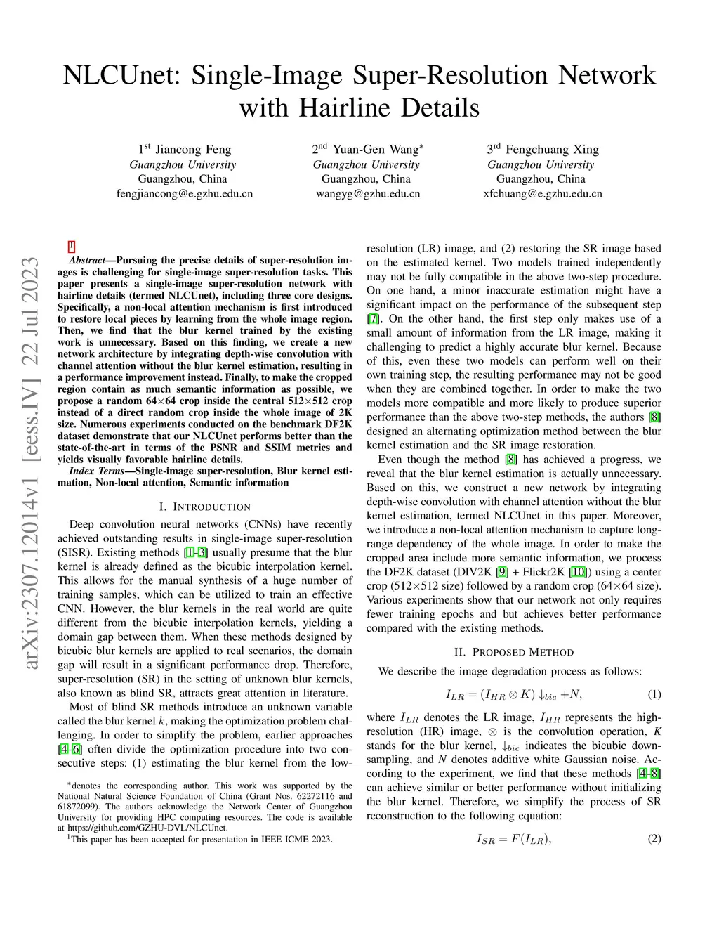 NLCUnet: Single-Image Super-Resolution Network with Hairline Details