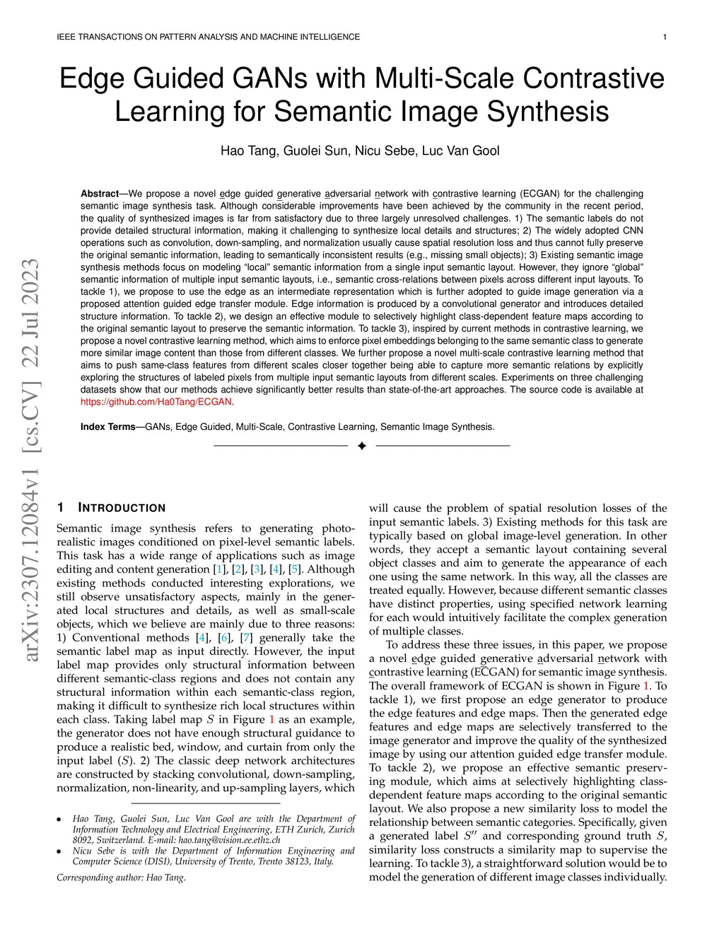 Edge Guided GANs with Multi-Scale Contrastive Learning for Semantic
