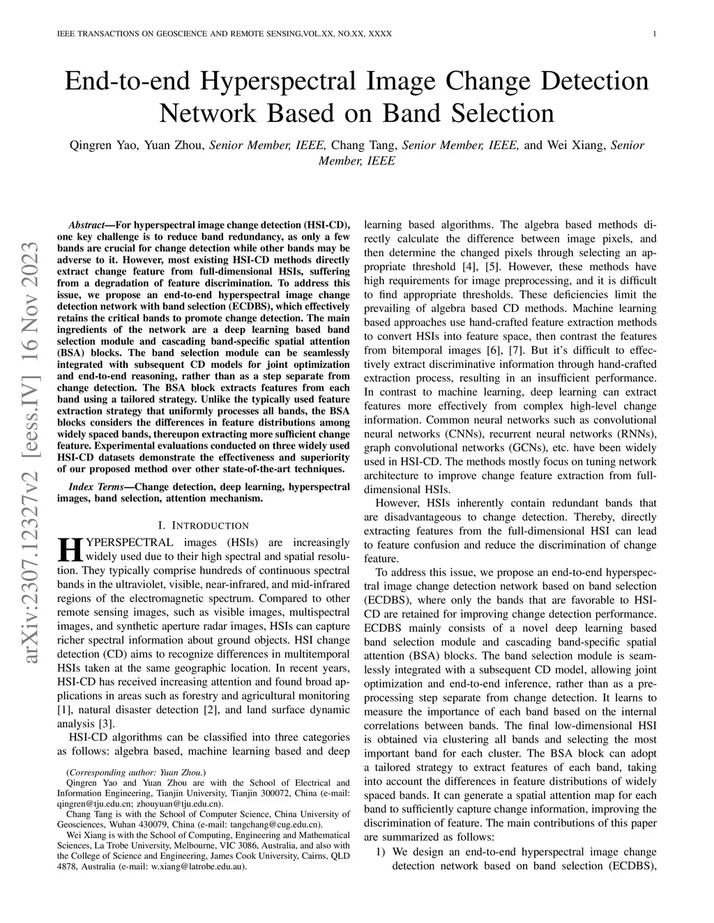 End-to-end Hyperspectral Image Change Detection Network Based on Band