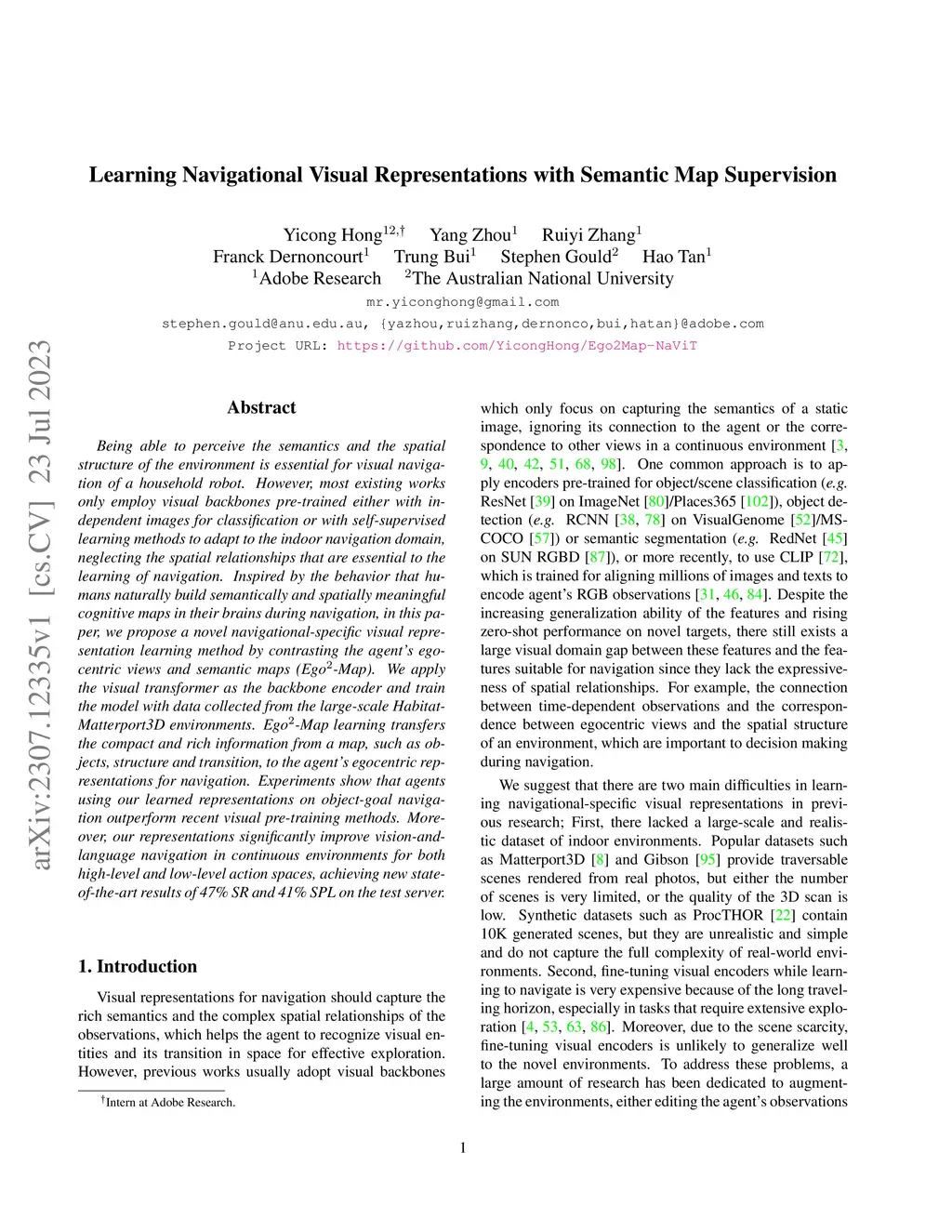Learning Navigational Visual Representations with Semantic Map