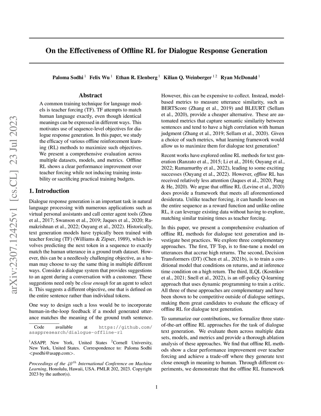 On the Effectiveness of Offline RL for Dialogue Response Generation