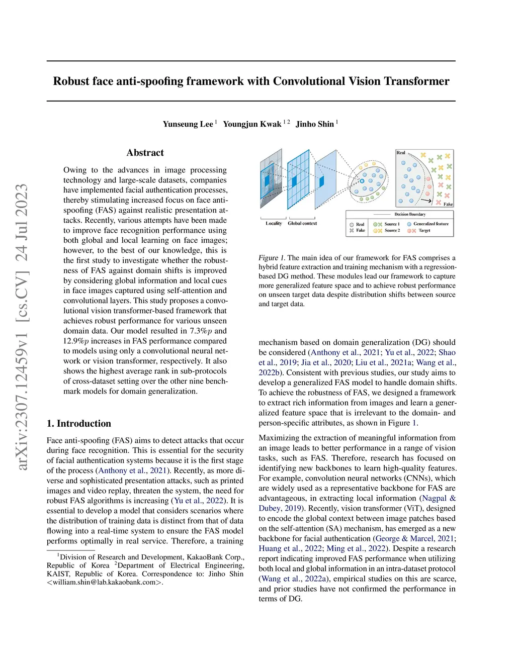 Owing to the advances in image processing technology and large-scale datasets, companies have implemented facial authentication processes, thereby stimulating increased focus on face anti-spoofing (FAS) against realistic presentation attacks. Recently, various attempts have been made to improve face recognition performance using both global and local learning on face images; however, to the best of our knowledge, this is the first study to investigate whether the robustness of FAS against domain shifts is improved by considering global information and local cues in face images captured using self-attention and convolutional layers. This study proposes a convolutional vision transformer-based framework that achieves robust performance for various unseen domain data. Our model resulted in 7.3% and 12.9% increases in FAS performance compared to models using only a convolutional neural network or vision transformer, respectively. It also shows the highest average rank in sub-protocols of cross-dataset setting over the other nine benchmark models for domain generalization.