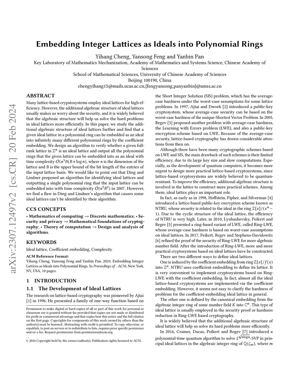 Embedding Integer Lattices as Ideals into Polynomial Rings
