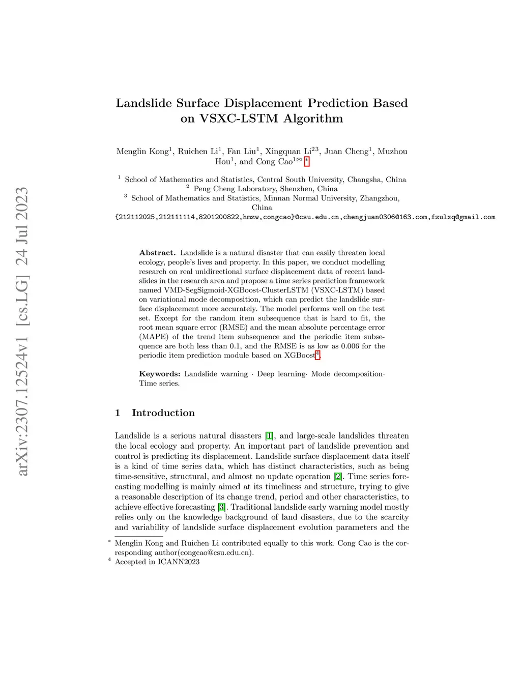 Landslide Surface Displacement Prediction Based on VSXC-LSTM Algorithm