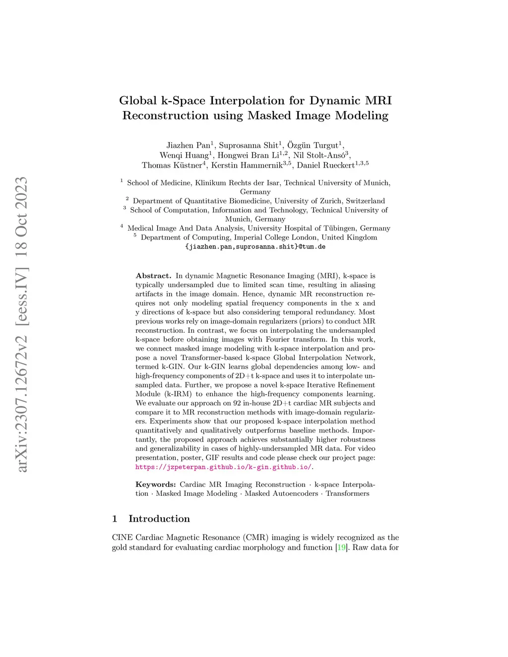 Global k-Space Interpolation for Dynamic MRI Reconstruction using Masked