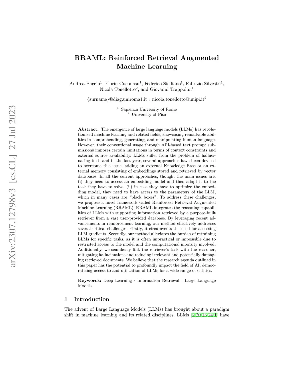 RRAML: Reinforced Retrieval Augmented Machine Learning