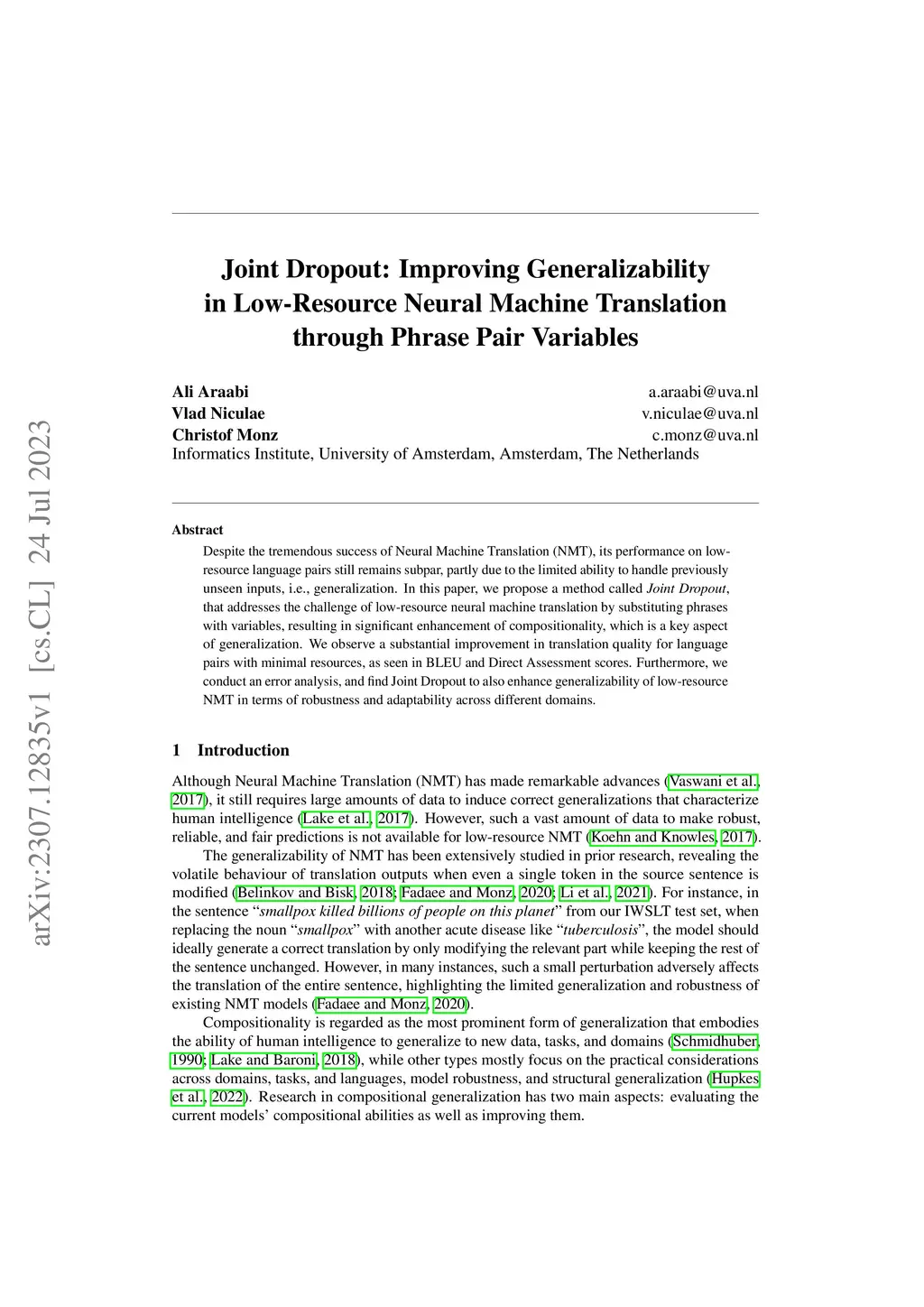 Joint Dropout: Improving Generalizability in Low-Resource Neural Machine