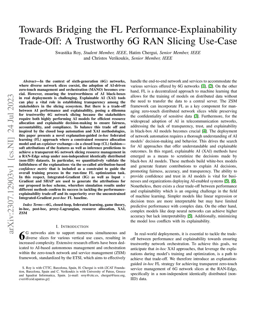 In the context of sixth-generation (6G) networks, where diverse network slices coexist, the adoption of AI-driven zero-touch management and orchestration (MANO) becomes crucial. However, ensuring the trustworthiness of AI black-boxes in real deployments is challenging. Explainable AI (XAI) tools can play a vital role in establishing transparency among the stakeholders in the slicing ecosystem. But there is a trade-off between AI performance and explainability, posing a dilemma for trustworthy 6G network slicing because the stakeholders require both highly performing AI models for efficient resource allocation and explainable decision-making to ensure fairness, accountability, and compliance. To balance this trade off and inspired by the closed loop automation and XAI methodologies, this paper presents a novel explanation-guided in-hoc federated learning (FL) approach where a constrained resource allocation model and an explainer exchange -- in a closed loop (CL) fashion -- soft attributions of the features as well as inference predictions to achieve a transparent 6G network slicing resource management in a RAN-Edge setup under non-independent identically distributed (non-IID) datasets. In particular, we quantitatively validate the faithfulness of the explanations via the so-called attribution-based confidence metric that is included as a constraint to guide the overall training process in the run-time FL optimization task. In this respect, Integrated-Gradient (IG) as well as Input Gradient and SHAP are used to generate the attributions for our proposed in-hoc scheme, wherefore simulation results under different methods confirm its success in tackling the performance-explainability trade-off and its superiority over the unconstrained Integrated-Gradient post-hoc FL baseline.