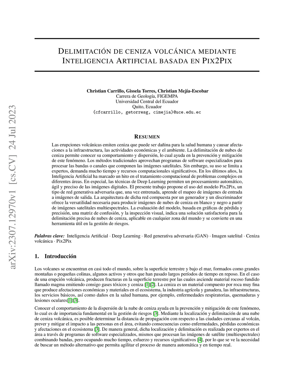 Volcanic ash delimitation using Artificial Intelligence based on Pix2Pix