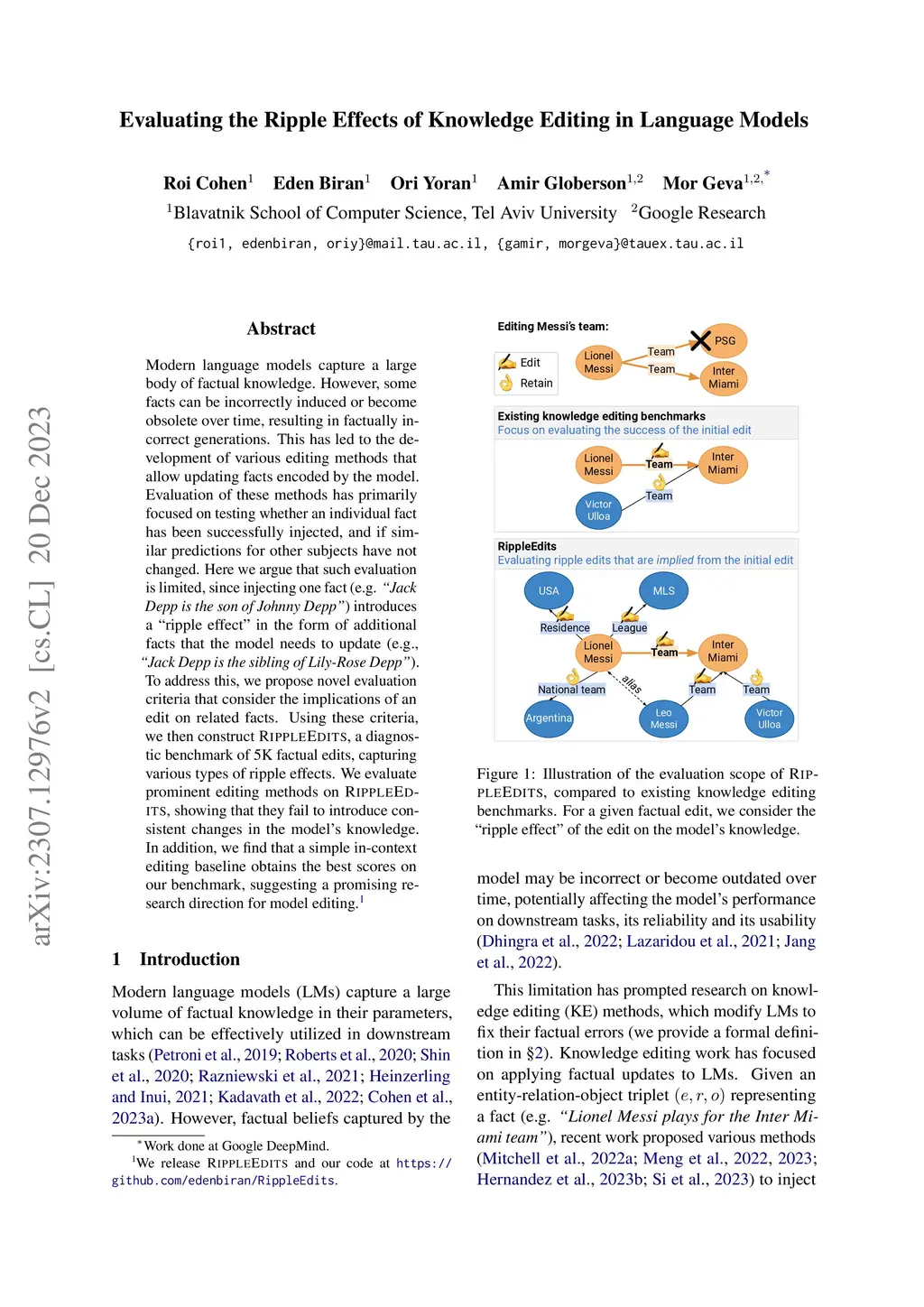 Modern language models capture a large body of factual knowledge. However, some facts can be incorrectly induced or become obsolete over time, resulting in factually incorrect generations. This has led to the development of various editing methods that allow updating facts encoded by the model. Evaluation of these methods has primarily focused on testing whether an individual fact has been successfully injected, and if similar predictions for other subjects have not changed. Here we argue that such evaluation is limited, since injecting one fact (e.g. ``Jack Depp is the son of Johnny Depp'') introduces a ``ripple effect'' in the form of additional facts that the model needs to update (e.g.``Jack Depp is the sibling of Lily-Rose Depp''). To address this issue, we propose a novel set of evaluation criteria that consider the implications of an edit on related facts. Using these criteria, we then construct RippleEdits, a diagnostic benchmark of 5K factual edits, capturing a variety of types of ripple effects. We evaluate prominent editing methods on RippleEdits, showing that current methods fail to introduce consistent changes in the model's knowledge. In addition, we find that a simple in-context editing baseline obtains the best scores on our benchmark, suggesting a promising research direction for model editing.