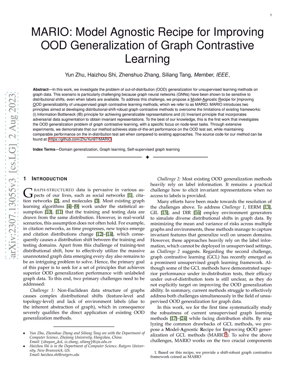 MARIO: Model Agnostic Recipe for Improving OOD Generalization of Graph